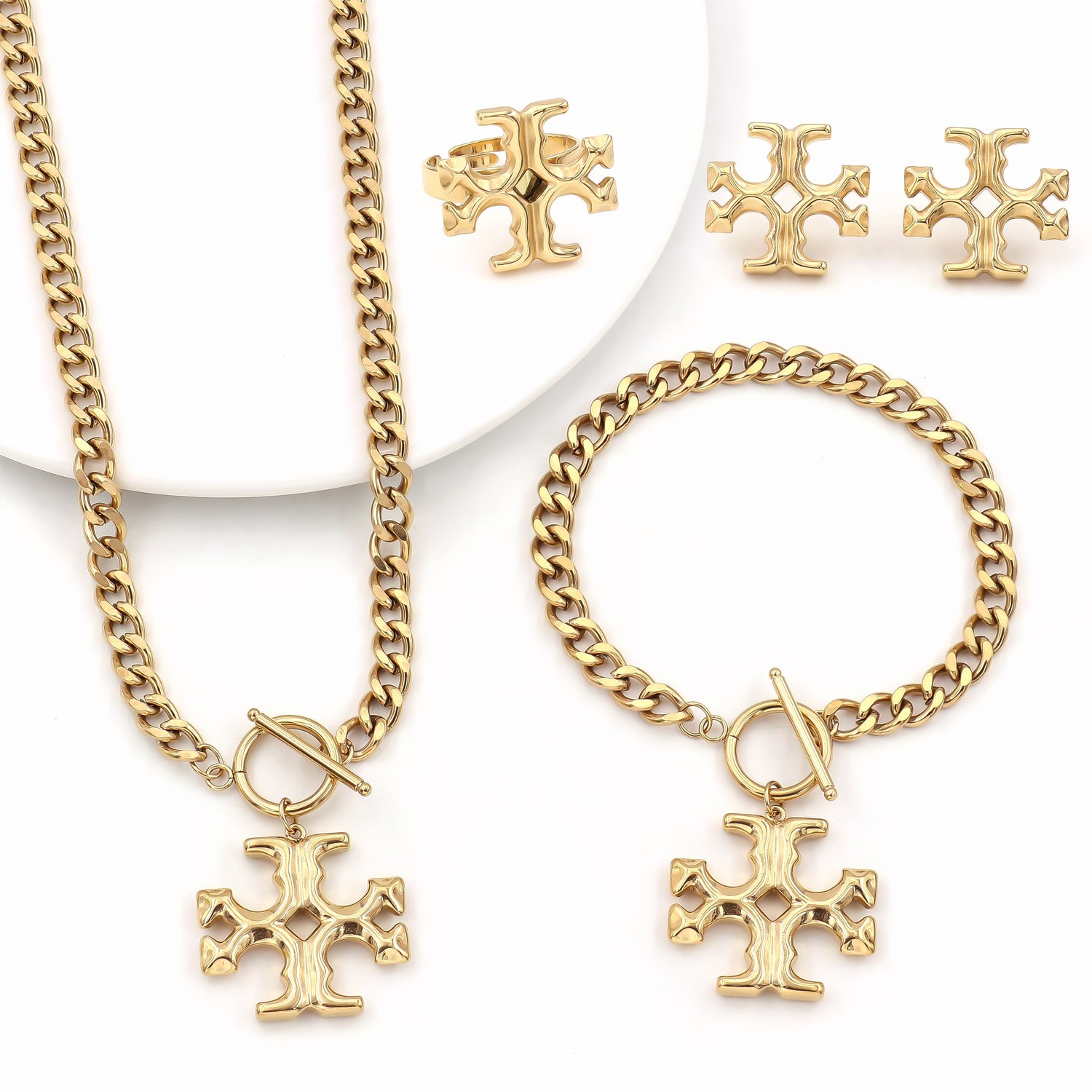 Cross-Border Retro Fashion Cross Snowflake Jewelry Set Women's Personalized Versatile Color-Preserving Jewelry Supply Wholesale