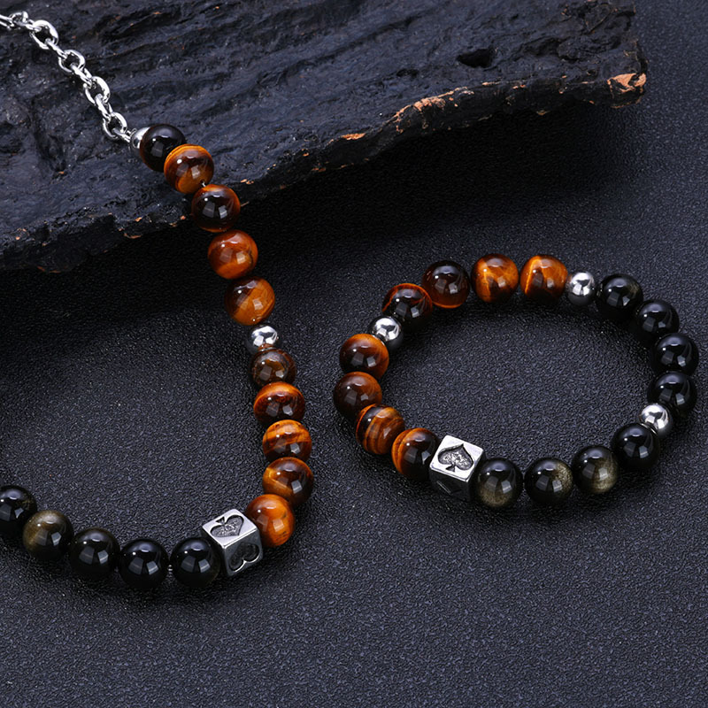 Original tiger's eye stone spell obsidian bracelet jewelry cross-border explosions natural stone necklace men's jewelry suit wholesale