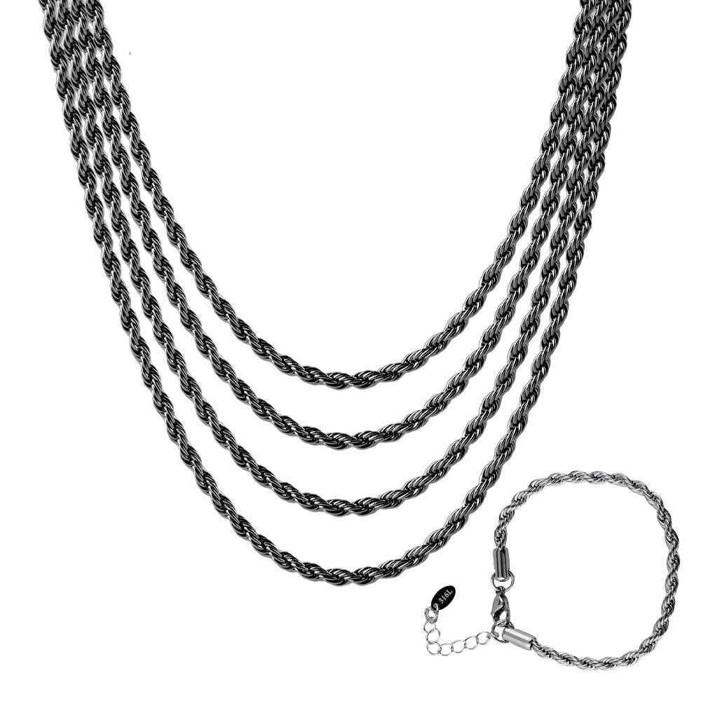European and American Hip Hop 4mm Twist Chain 316L Stainless Steel Color Bracelet No Falling No Allergy Men's and Women's Jewelry suit