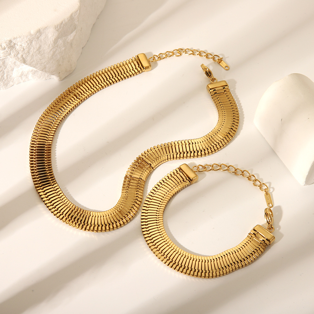 Cross-Border New Color-Preserving Stainless Steel Basic Necklace Bracelet Set for Women Simple Hip-Hop Non-Fading Clavicle Chain Jewelry