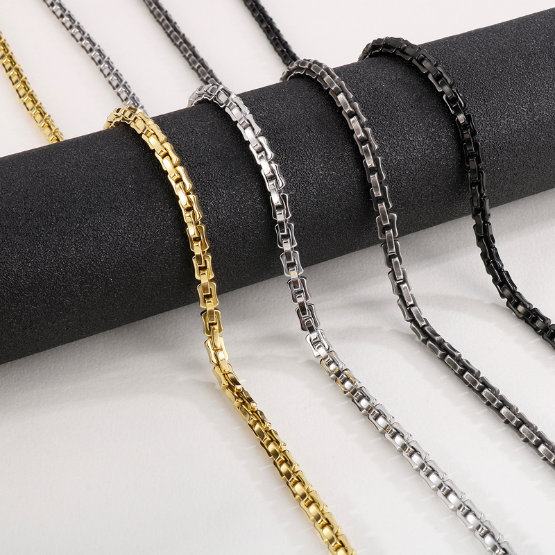 European and American Cross-Border Hot-Selling Cool Style Stainless Steel Chain Bracelet Necklace Set Two-Piece Set Men's Personalized Simple Jewelry