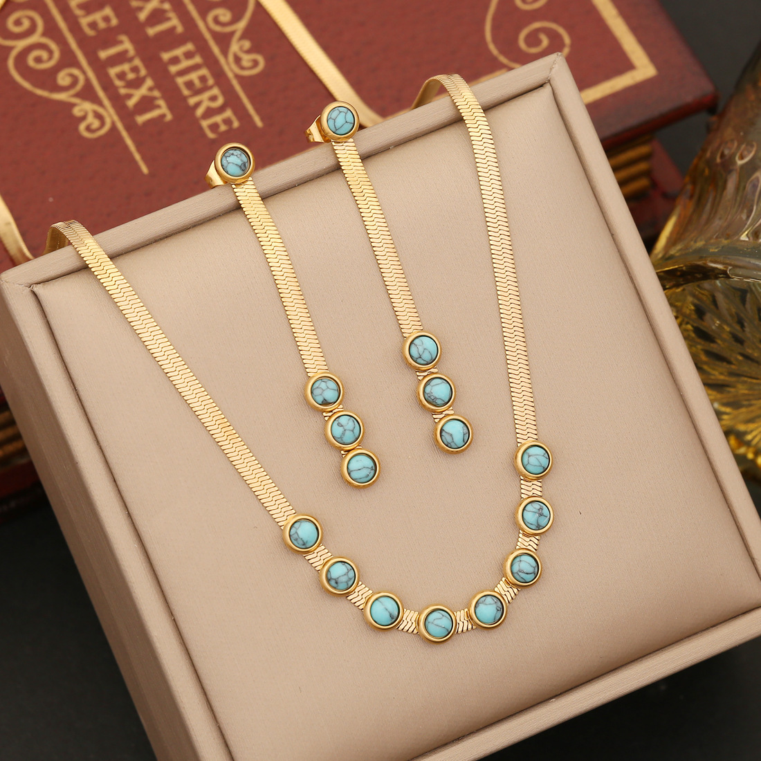Cross-Border New Jewelry Turquoise Stainless Steel Jewelry Set Blade Chain Necklace Elegant Clavicle Chain N1196