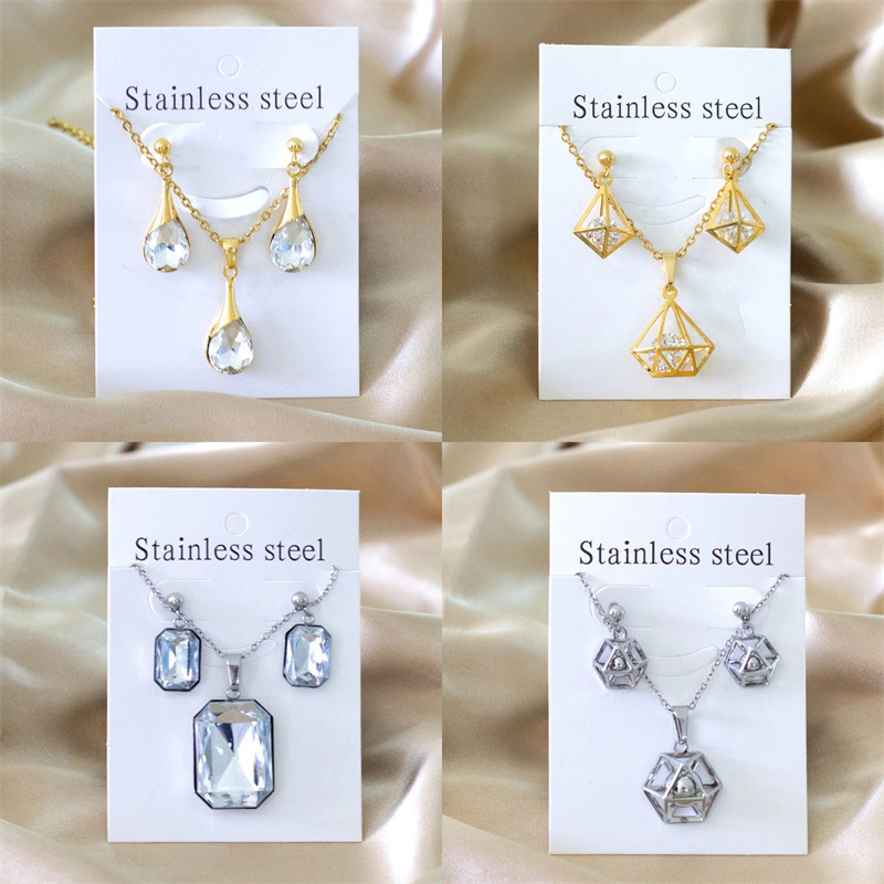 European and American fashion earrings necklace set female personality zircon geometric simple temperament foreign trade stainless steel jewelry set
