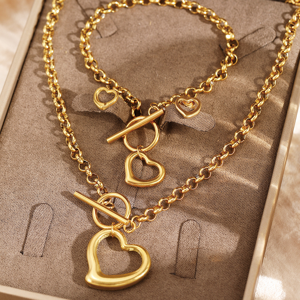 Exquisite Fashion Personality Versatile Stainless Steel Love Pendant Pincter Chain Otch Buckle Charm Bracelet Necklace suit