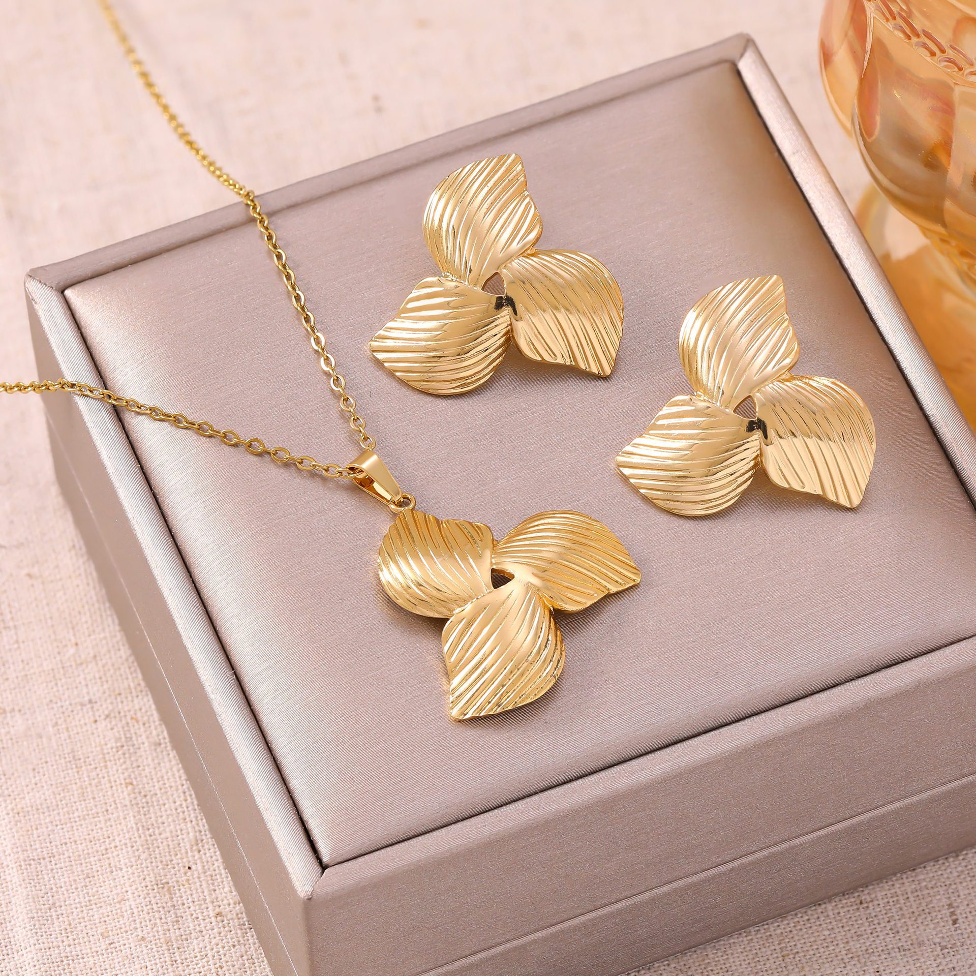 European and American Accessible Luxury Stainless Steel Jewelry Set for Women Gold Anti-Fading Fashion Ins Style Necklace Earrings Jewelry Set
