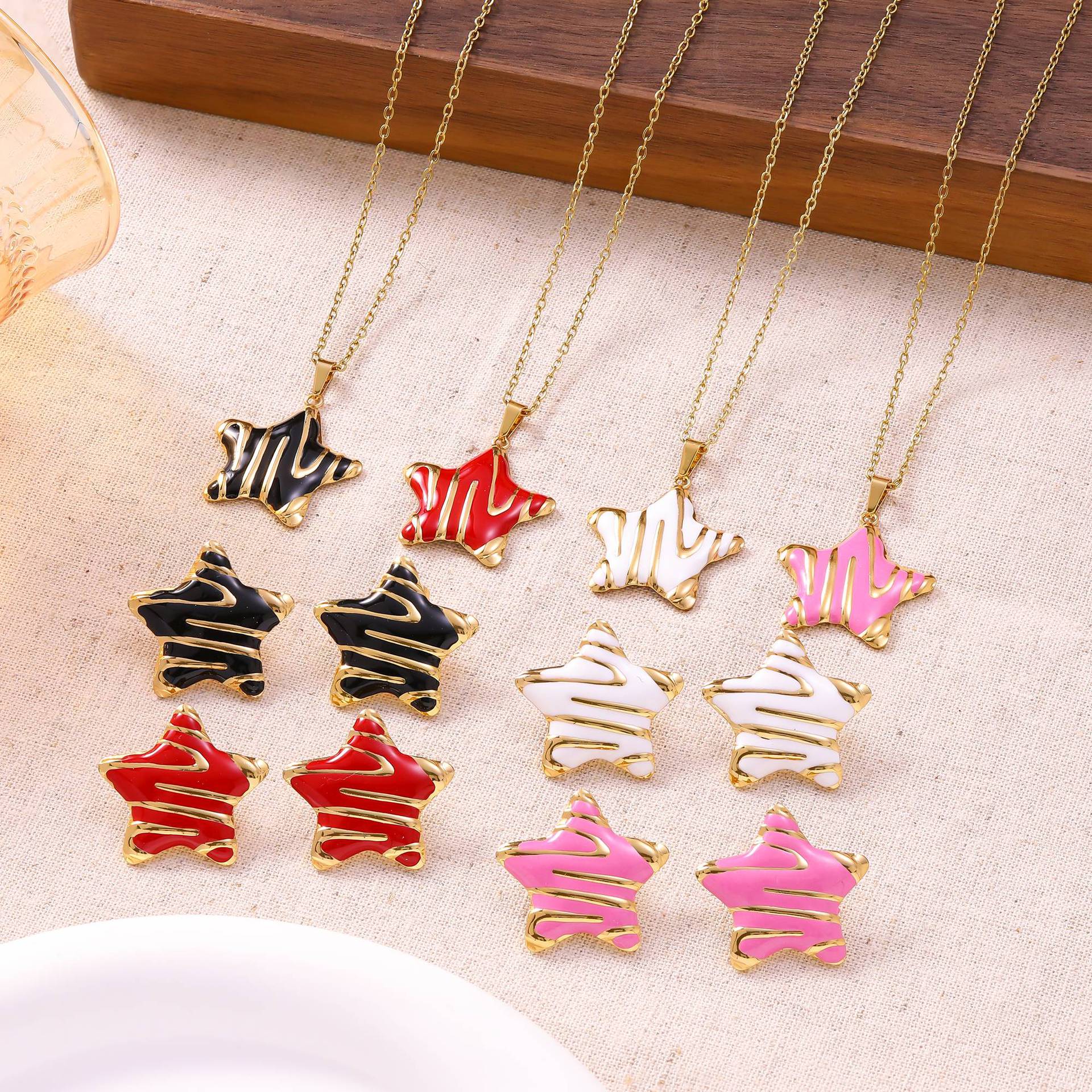 Cross-Border New Oil Dripping Stainless Steel Jewelry Set Women's Five-Pointed Star Fashion Holiday Style Earrings Necklace Jewelry Set