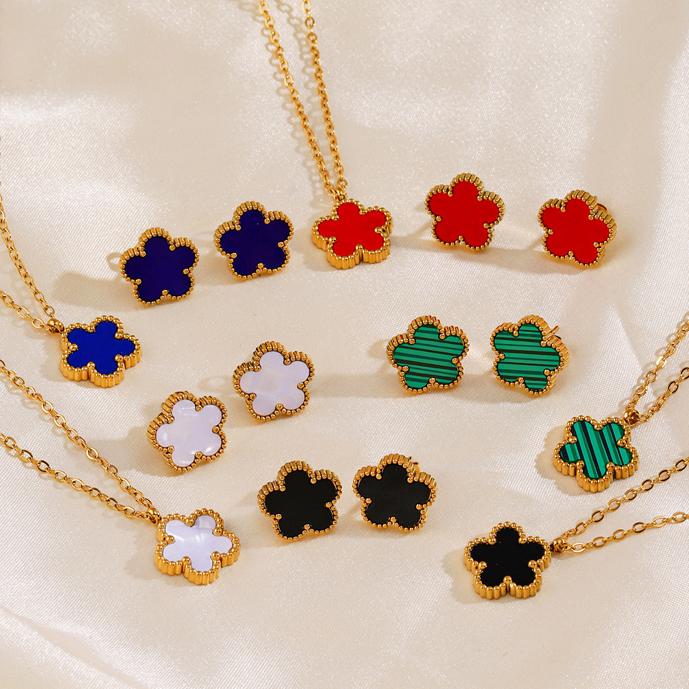 high quality stainless steel five-leaf flower earrings necklace suit simple popular color titanium steel plum blossom jewelry earrings