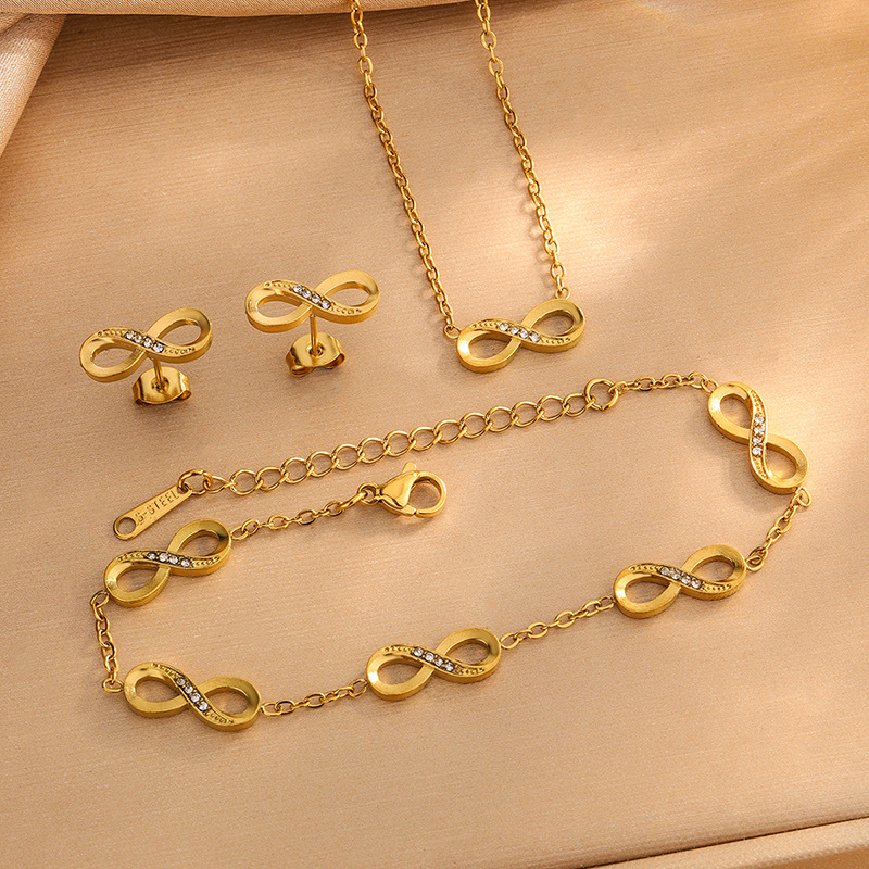 Temu Xiyin Hot-Selling Infinity Symbol Necklace Bracelet Earrings Set Ins Style Personalized Versatile Stainless Steel Jewelry