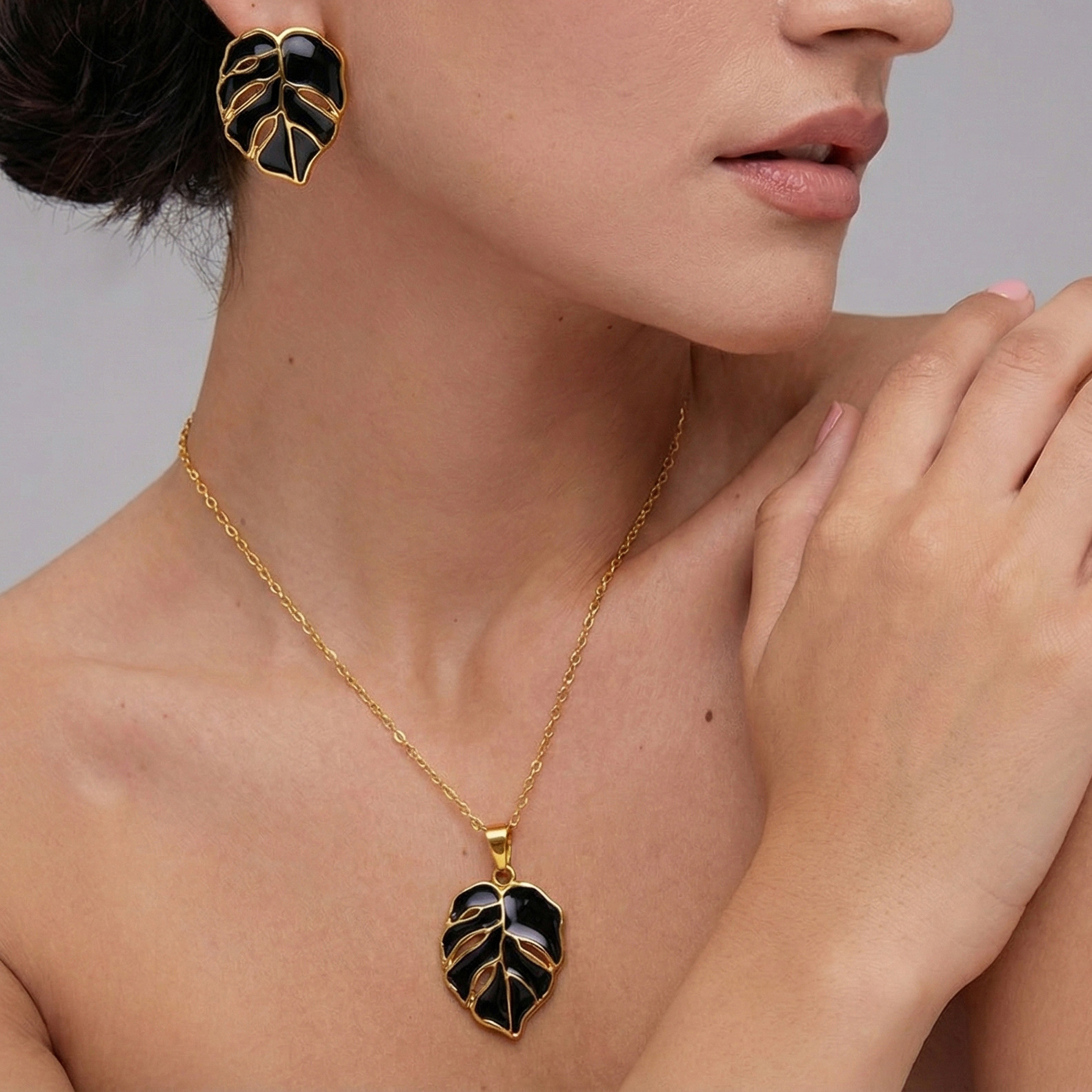 New Cross-Border Fashion Flower Bow Oil Drop Set Series 304 Stainless Steel Pendant Necklace Earrings Wholesale