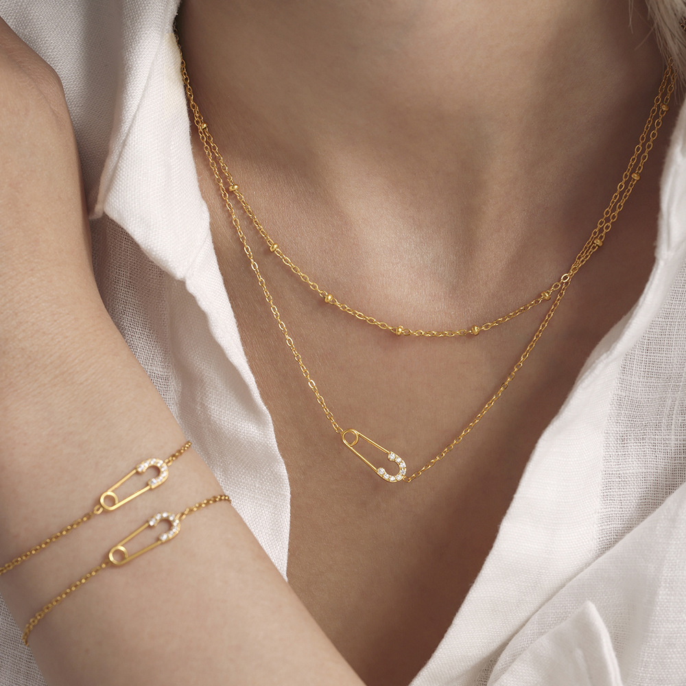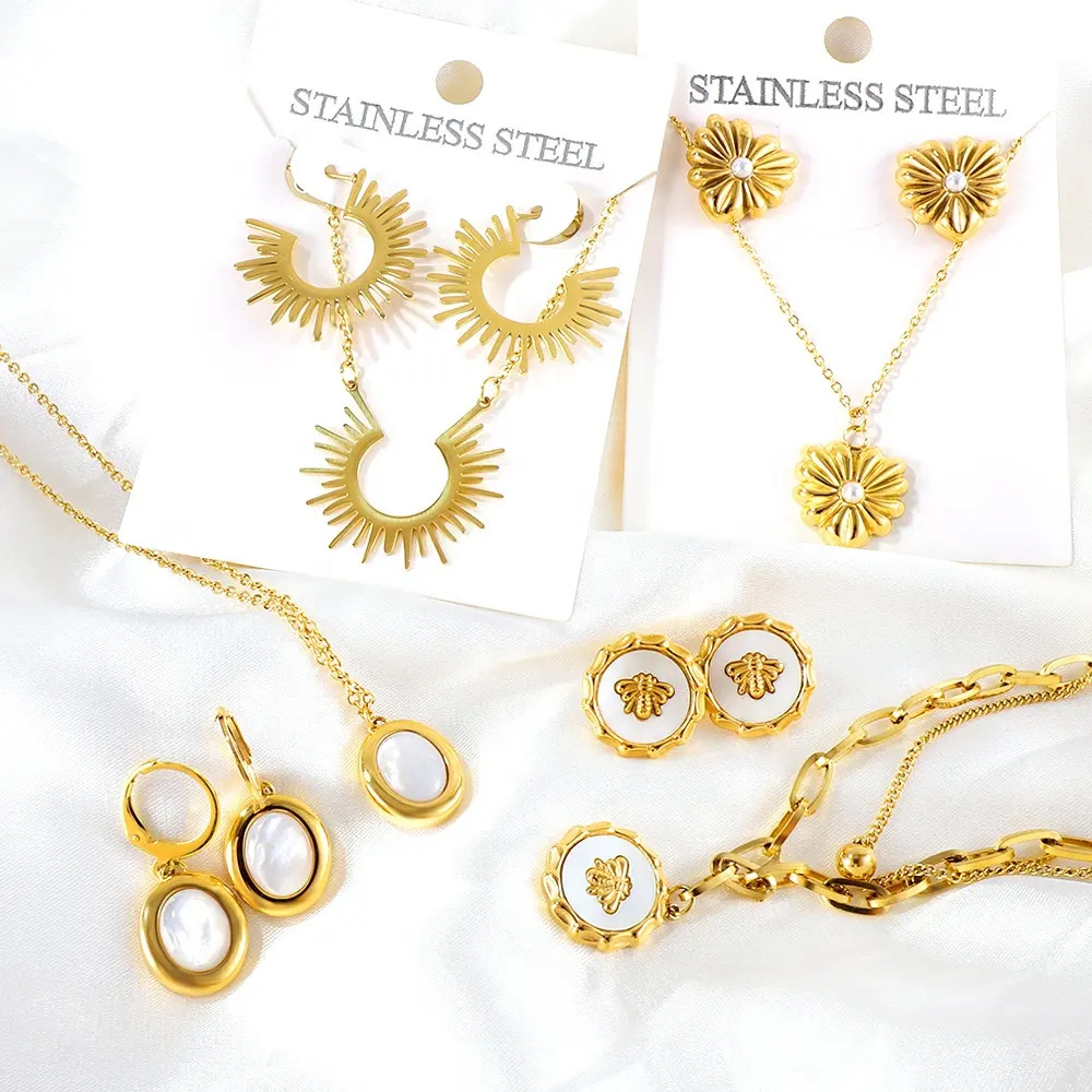 European and American Popular Accessible Luxury High-End Clavicle Pendant Earrings 18K Gold Stainless Steel Jewelry Set Earrings Necklace for Women