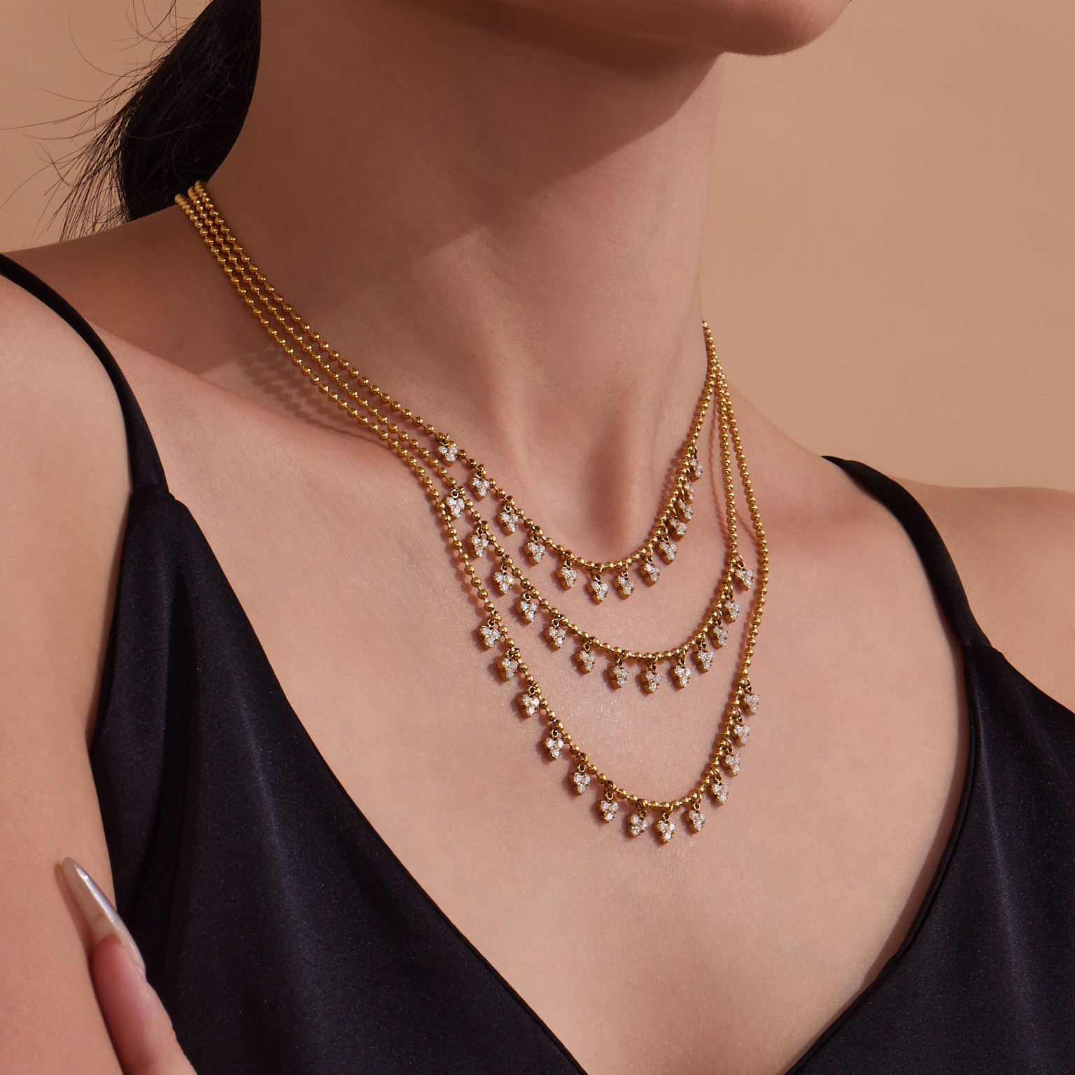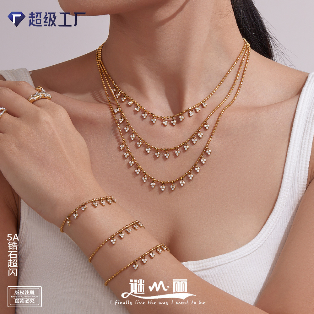 Mili Exquisite and Compact Triangular Tassel Inlaid Small Diamond Clavicle Chain Bracelet Light Luxury Fashion Stainless Steel Jewelry Set