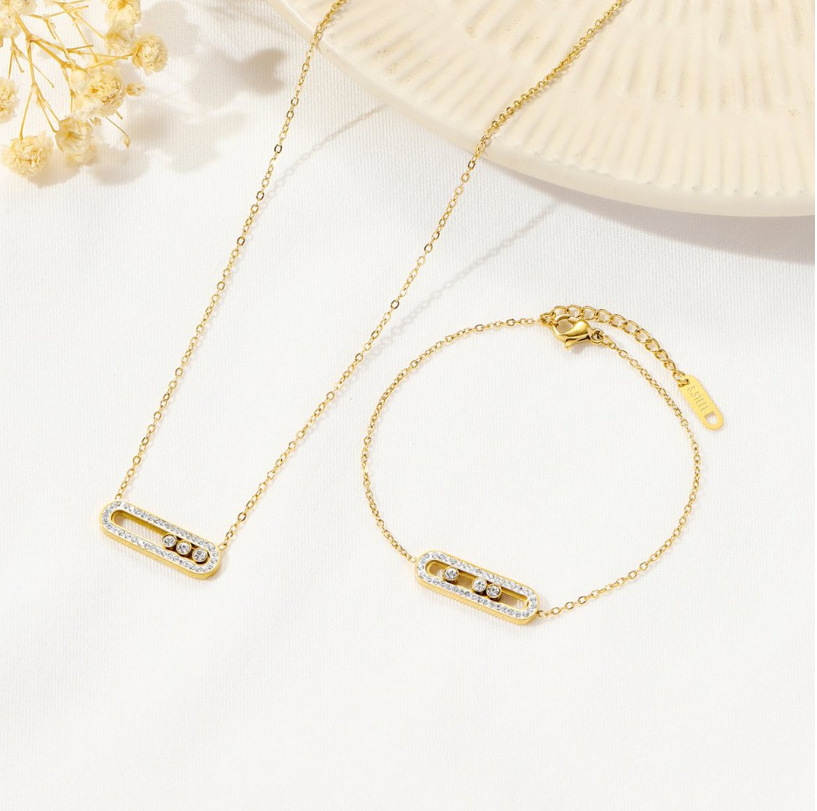 European and American Cross-Border Stainless Steel Bracelet Electroplated Non-Fading Titanium Steel Necklace Simple and Exquisite Light Luxury Jewelry Chain Set