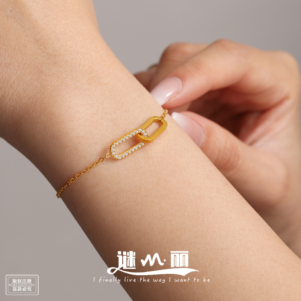 Enigma colorful dopamine handmade inlaid zircon clavicle necklace exquisite bracelet stainless steel 18K gold suit