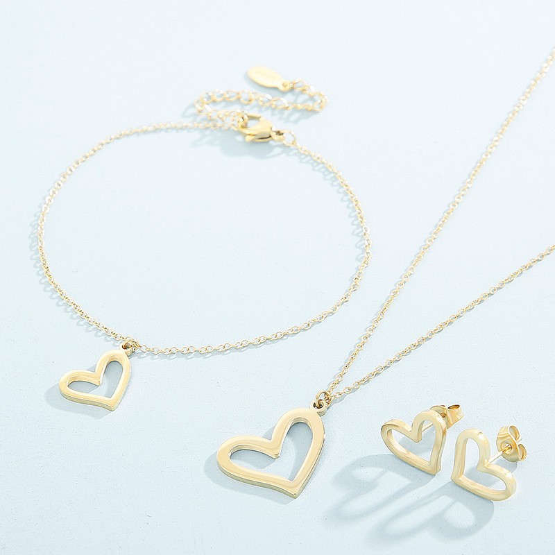 Japanese and Korean Simple and Sweet Hollow Heart Art Design Heart-Shaped Bracelet Necklace Earrings Set Wholesale Titanium Steel Jewelry