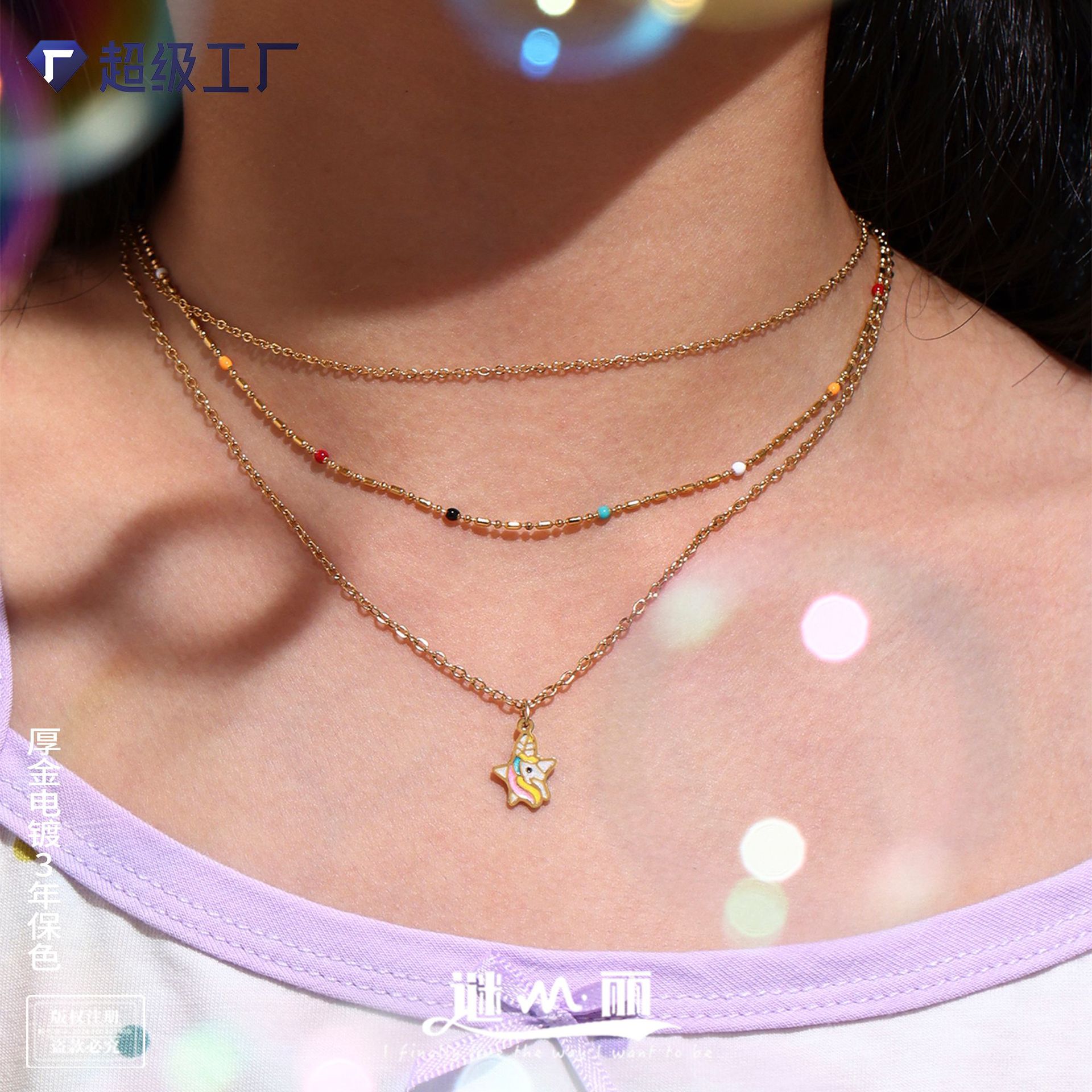 Mili Cartoon Oil Drip Dopamine Unicorn Cute Pony Necklace Bracelet Anklet Ring Titanium Steel Children's Set