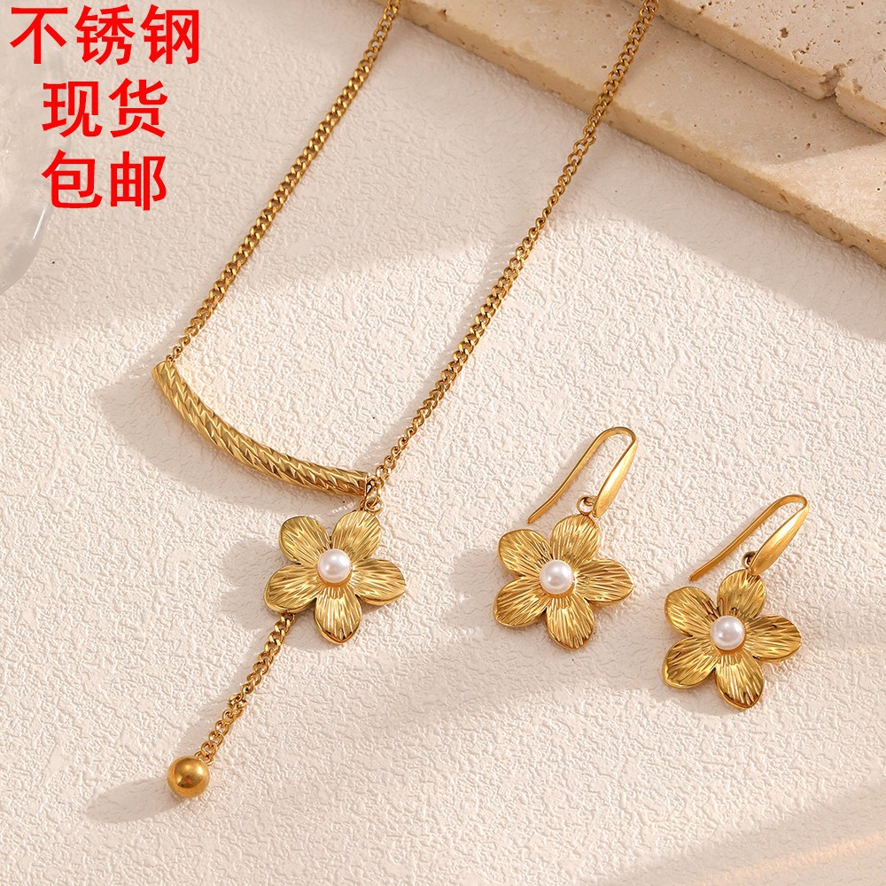 Cross-Border New Stainless Steel Pendant Handmade Retro High-End 18K Gold-Plated Accessible Luxury Necklace Earrings Set Jewelry