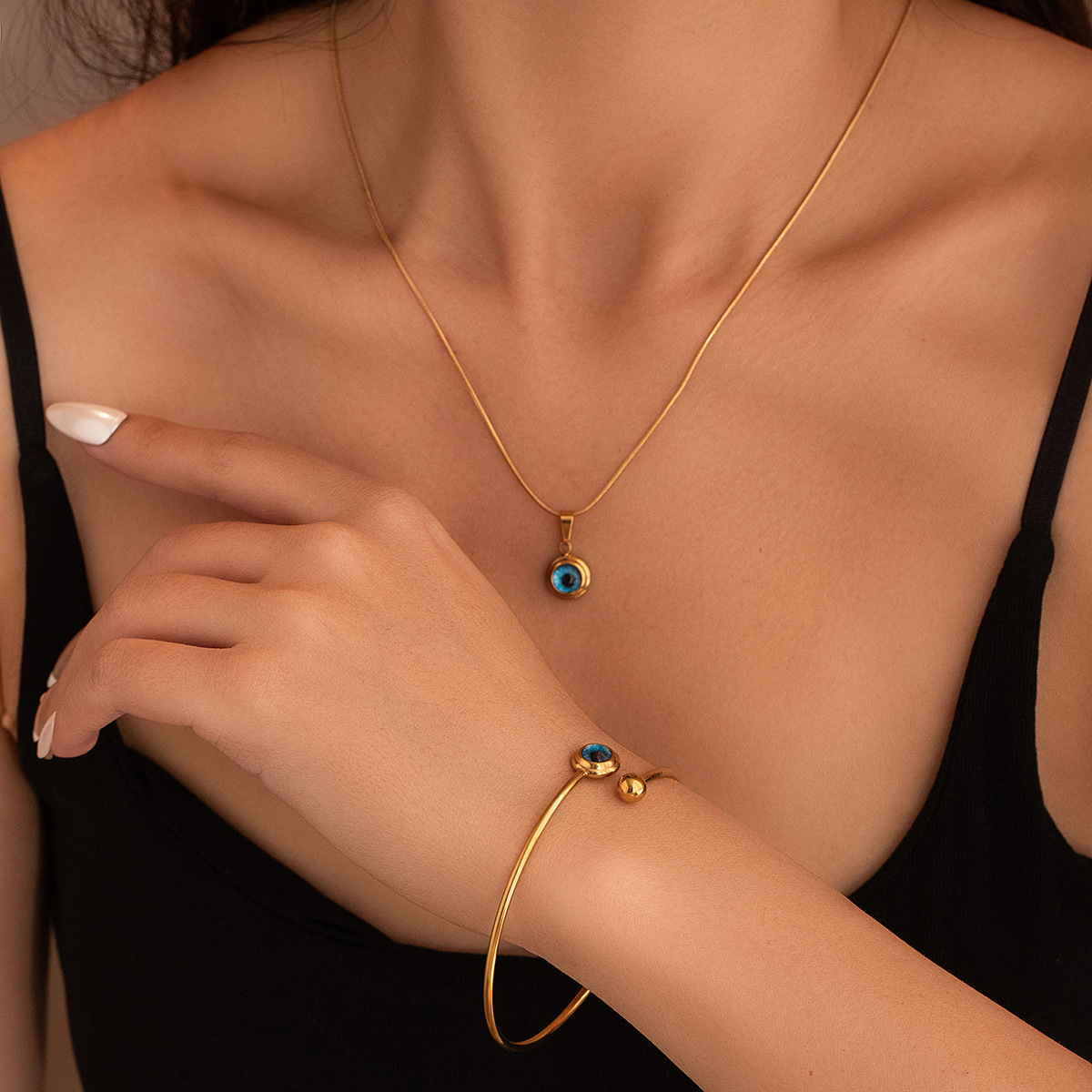 European and American Angel Eyes Men's and Women's Golden Exquisite Clavicle Chain Personalized Accessible Luxury Design Set Necklace Bracelet
