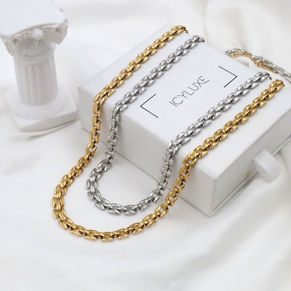 European and American Hip Hop Exaggerated Metal Retro Cuban Chain Watch with Internet Celebrity Coarse Chain Neutral Wind Necklace Bracelet suit