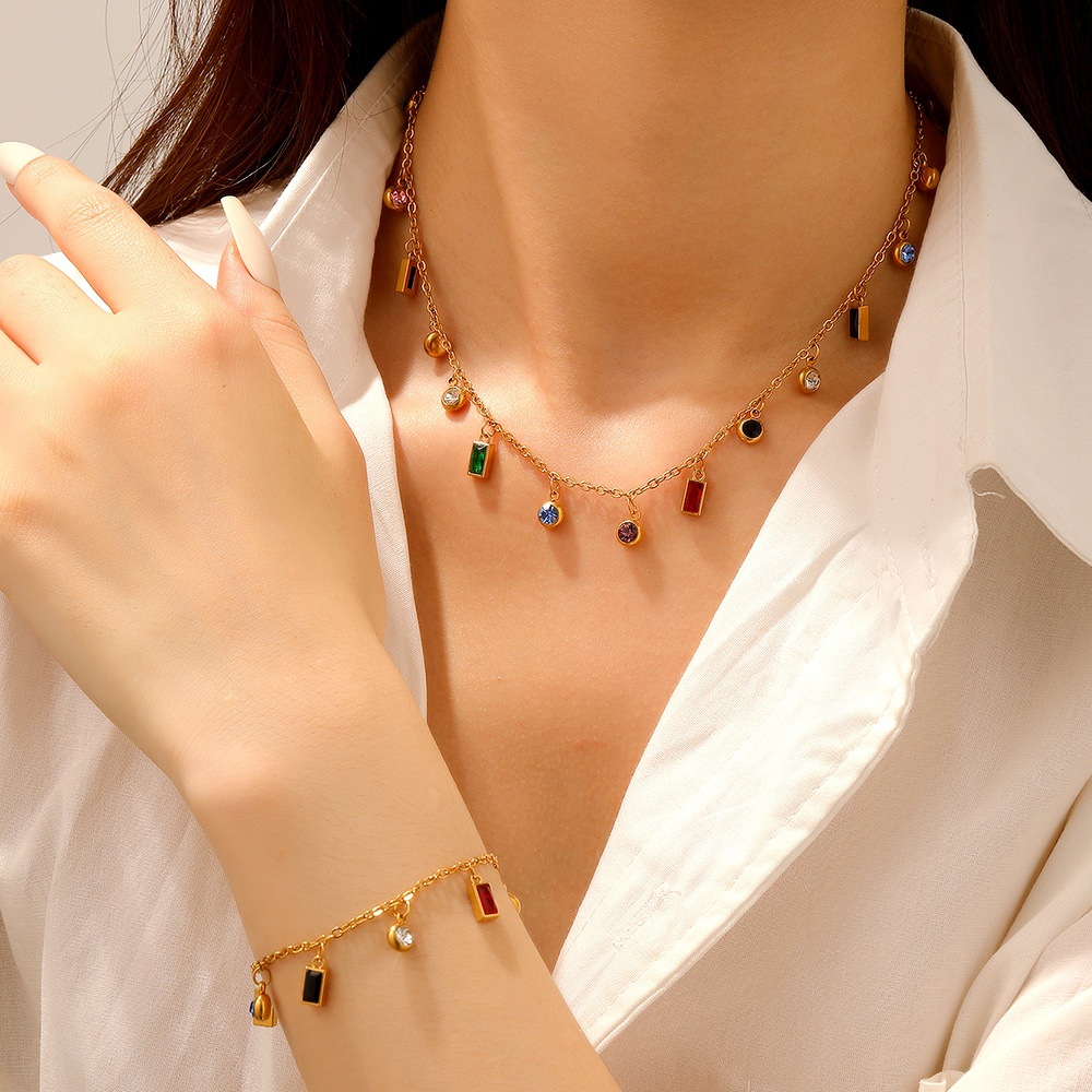 Cross-Border Stainless Steel Zircon Necklace Bracelet Set Titanium Steel Plated 18K Gold Crystal Pendant Women's High-End Jewelry