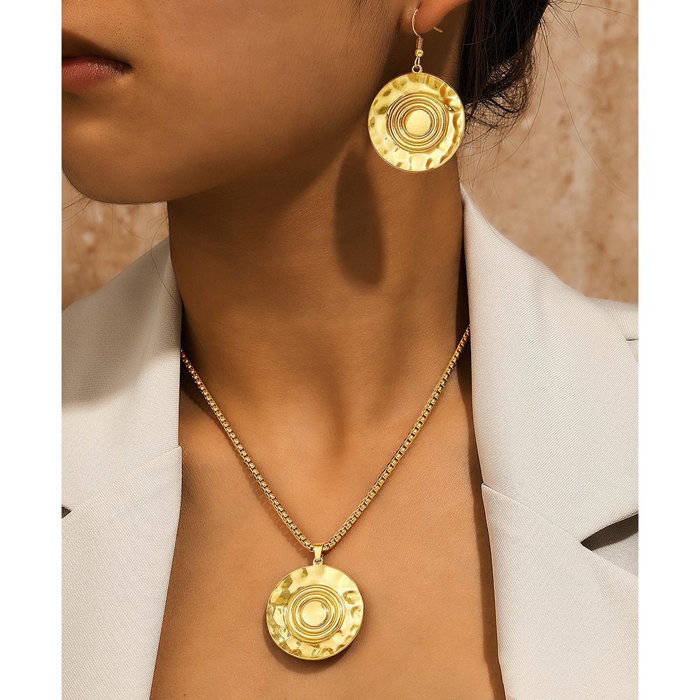 Stainless Steel suit Embossed Abstract Ruffled Texture Necklace Earrings suit Women Jewelry Party Commuter Accessories