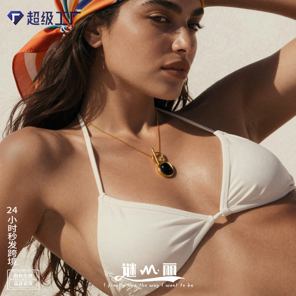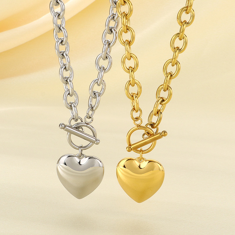 European and American Cross-Border Popular Ins-Style Ot Buckle Necklace, Fashionable and Versatile, Glossy Heart Pendant, Titanium Steel Jewelry Set for Women