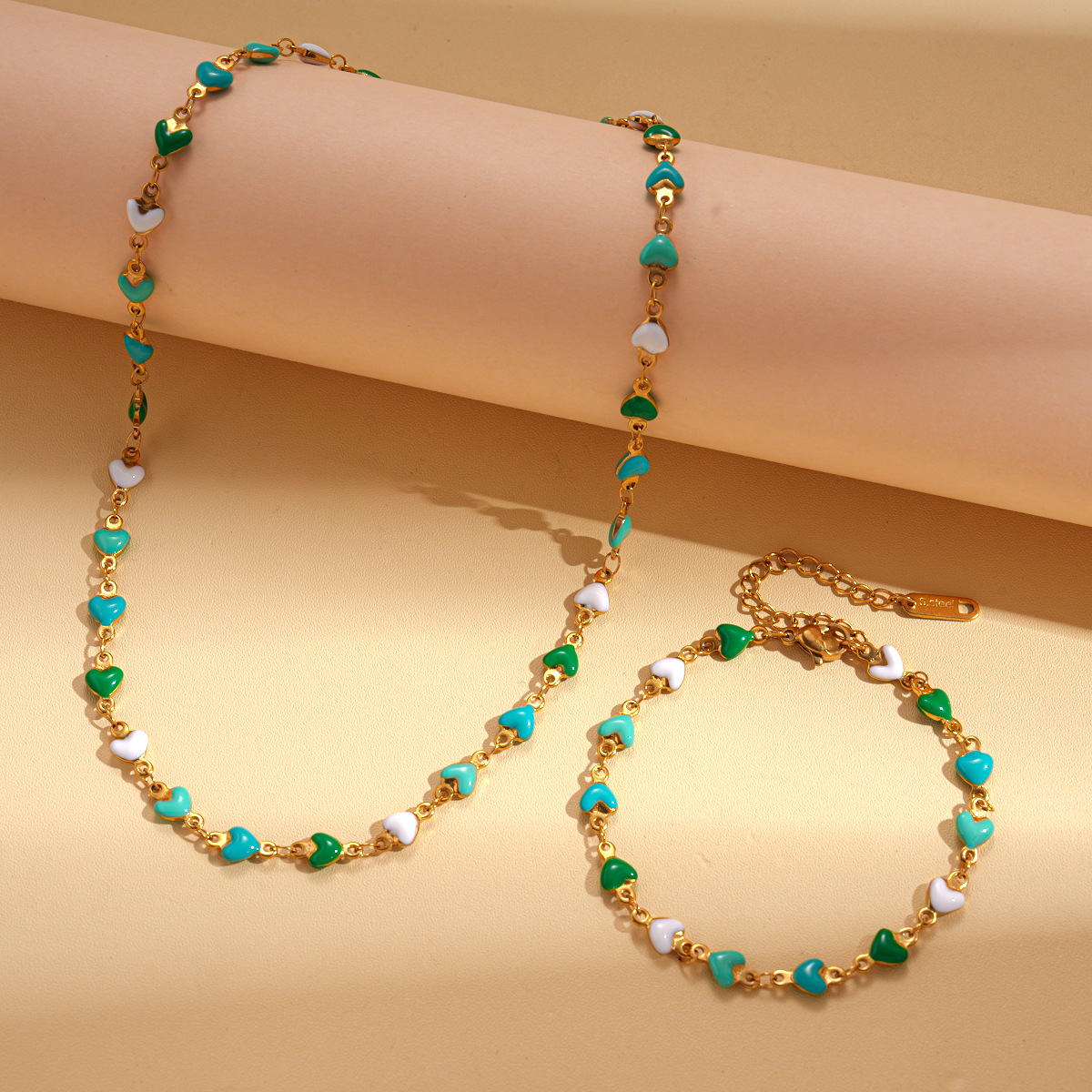 Stainless Steel Oil Dripping Love Necklace Bracelet Casual Fashion Commuting Versatile Jewelry Set Light Luxury High-End Jewelry