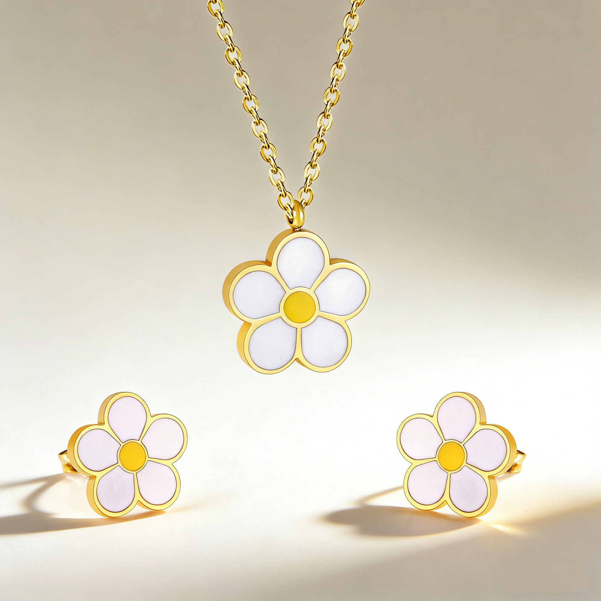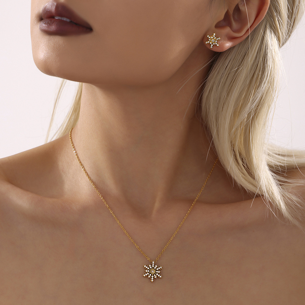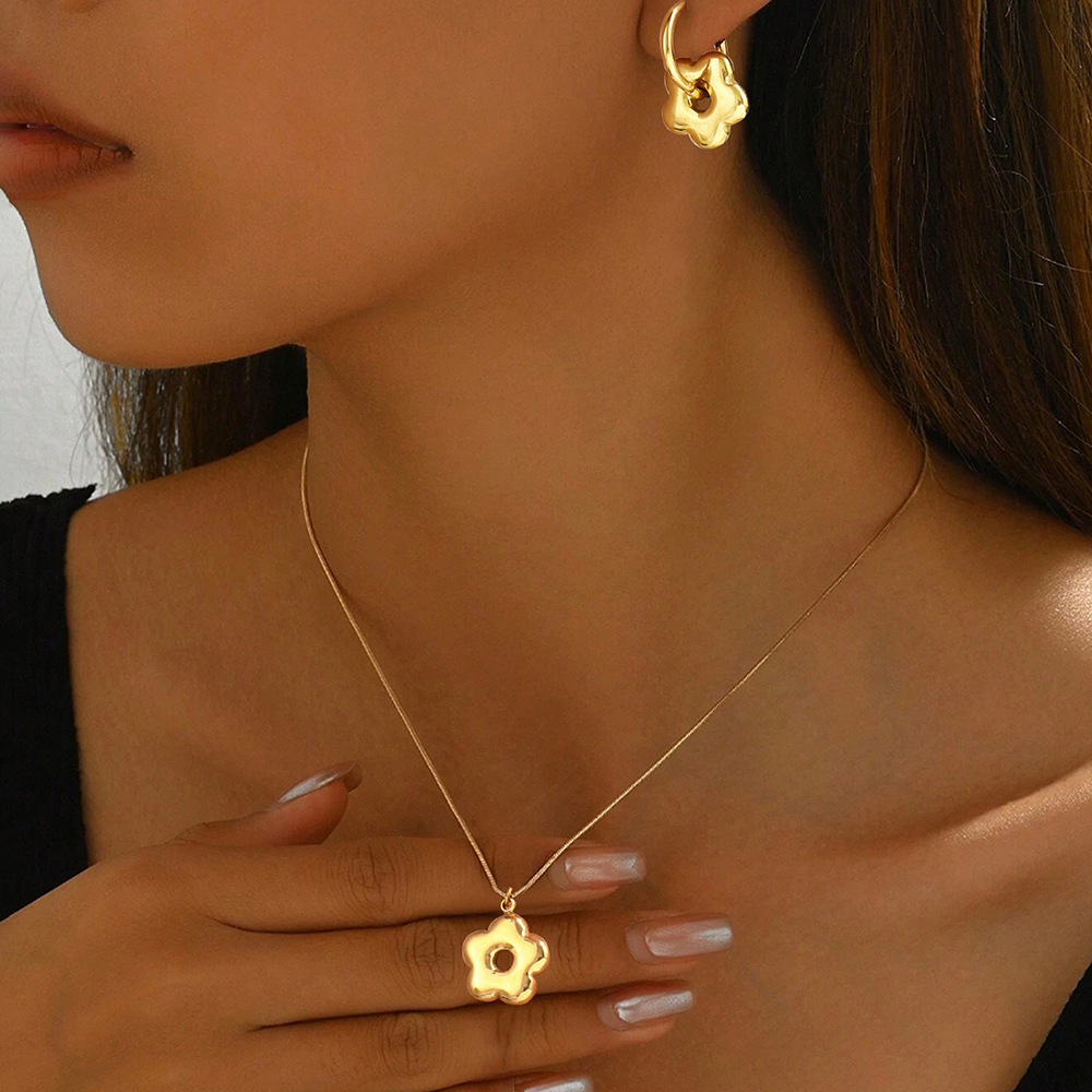 Stainless Steel Flower Necklace Earrings suit Women's Light Luxury Exquisite Fashion Elegant Personality Necklace Niche does not fade