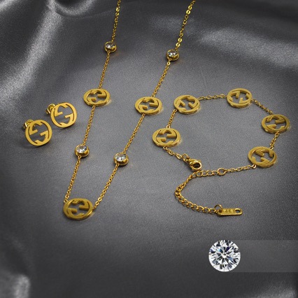 [Titanium Steel] Gujia European and American Cross-Border Hand Necklace and Earrings Set Color-Preserving Zircon Hand Jewelry Set