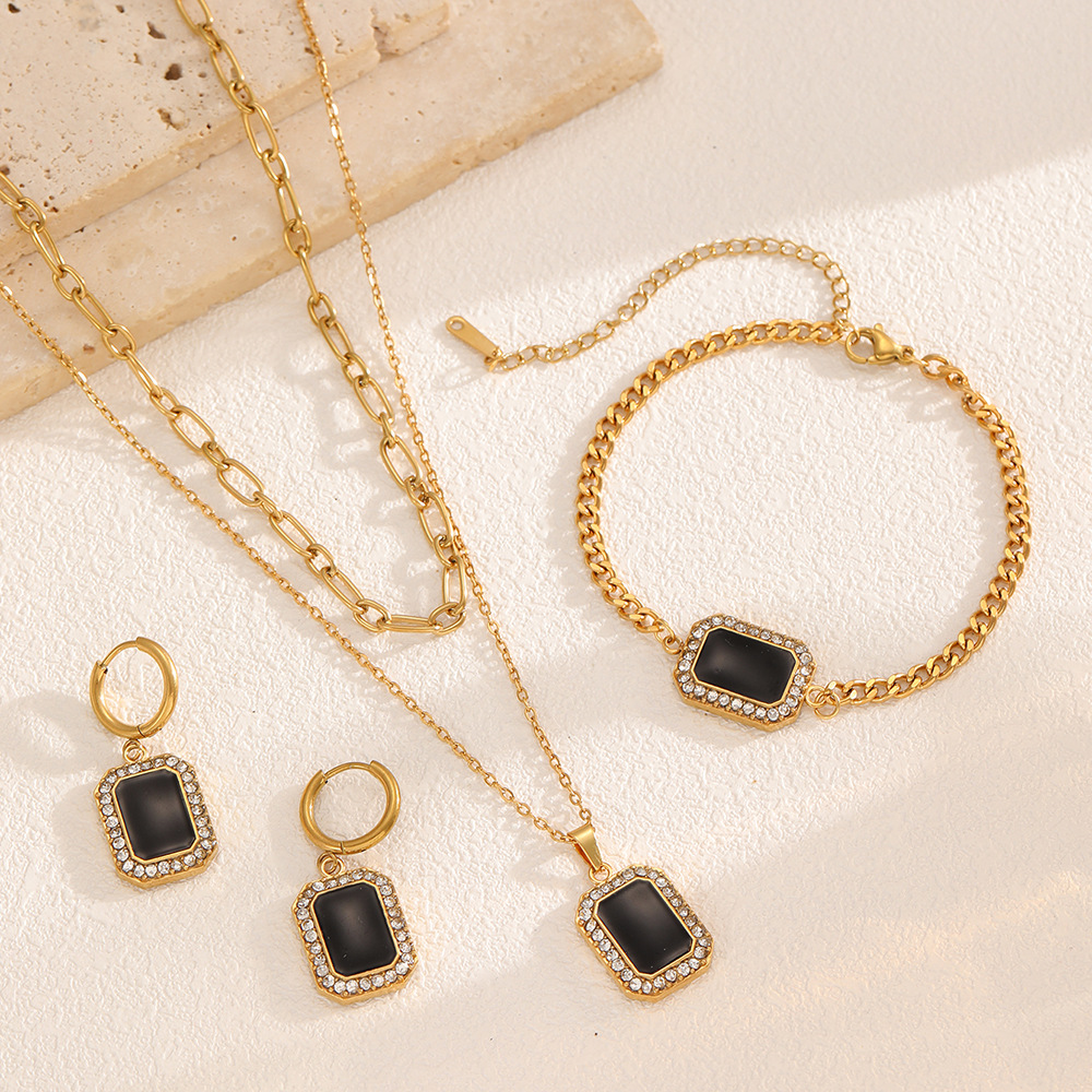 Geometric Stainless Steel Necklace, Earrings and Bracelet Combination Set Cross-Border European and American Jewelry Women's 18K Gold-Plated Jewelry