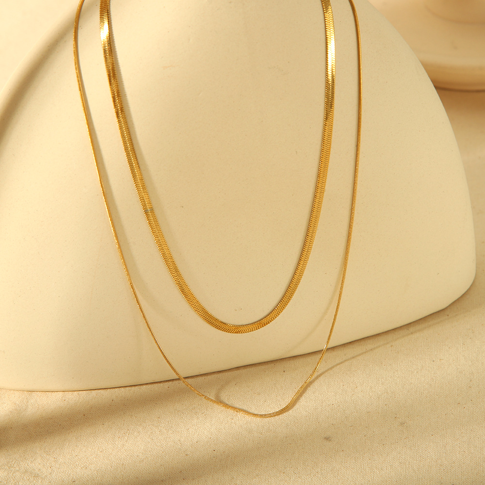 European and American Ins Simple Detachable Collarbone Chain Stainless Steel Plated 18K Gold Flat Snake Chain Thin Snake Bone Chain suit Necklace for Women