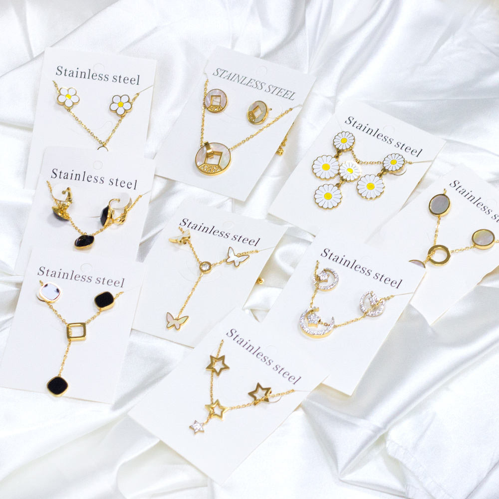 European and American Hot Selling Fashion 18K Gold Stainless Steel Earrings Necklace Jewelry Set Elegant Exquisite Jewelry Set for Women
