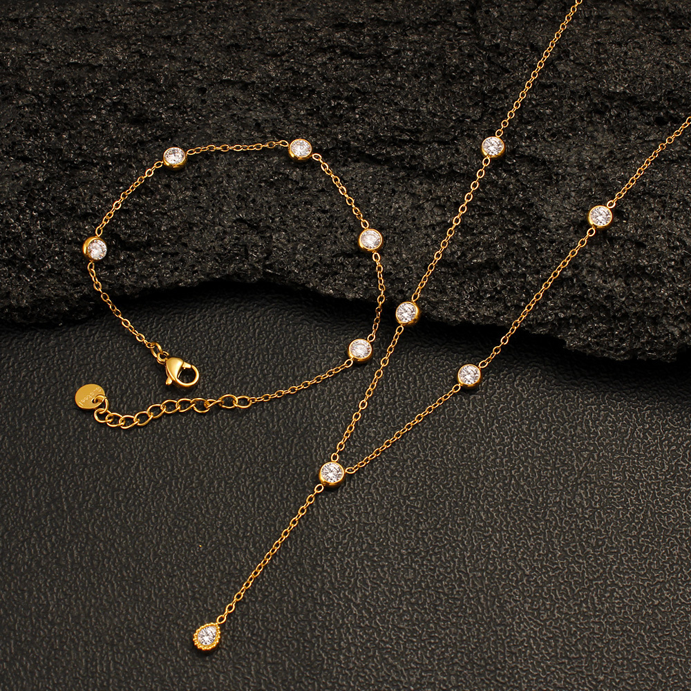 Foreign trade cross-border supply bracelet necklace suit stainless steel diamond jewelry women fashion diamond bracelet necklace wholesale