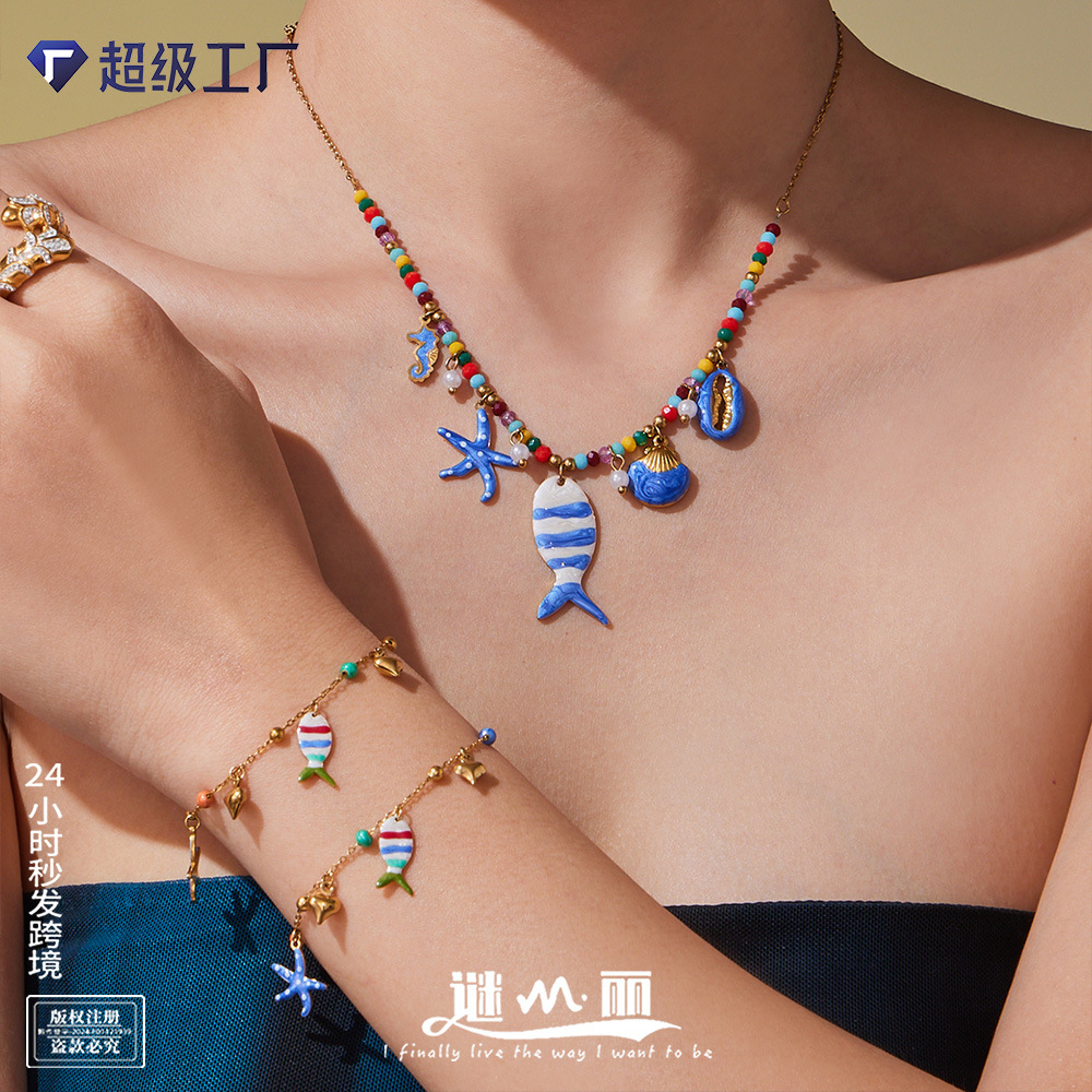 Mili Ocean Style Enamel Glaze Starfish Clownfish Necklace Bracelet Anklet DIY Multi-Pendant Stainless Steel Jewelry