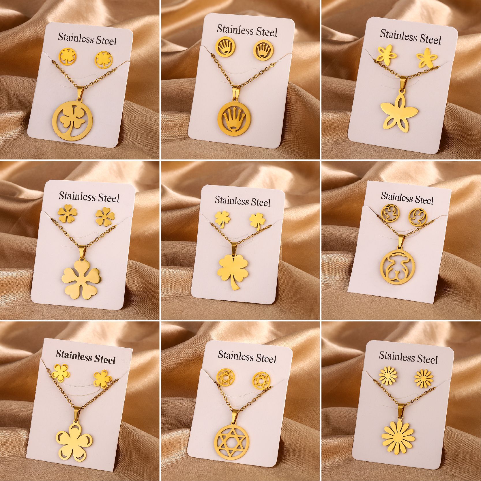 Cross-Border Love Four-Leaf Clover Flower Personalized Simple Stainless Steel Jewelry Set Gold Earrings Necklace Set Wholesale