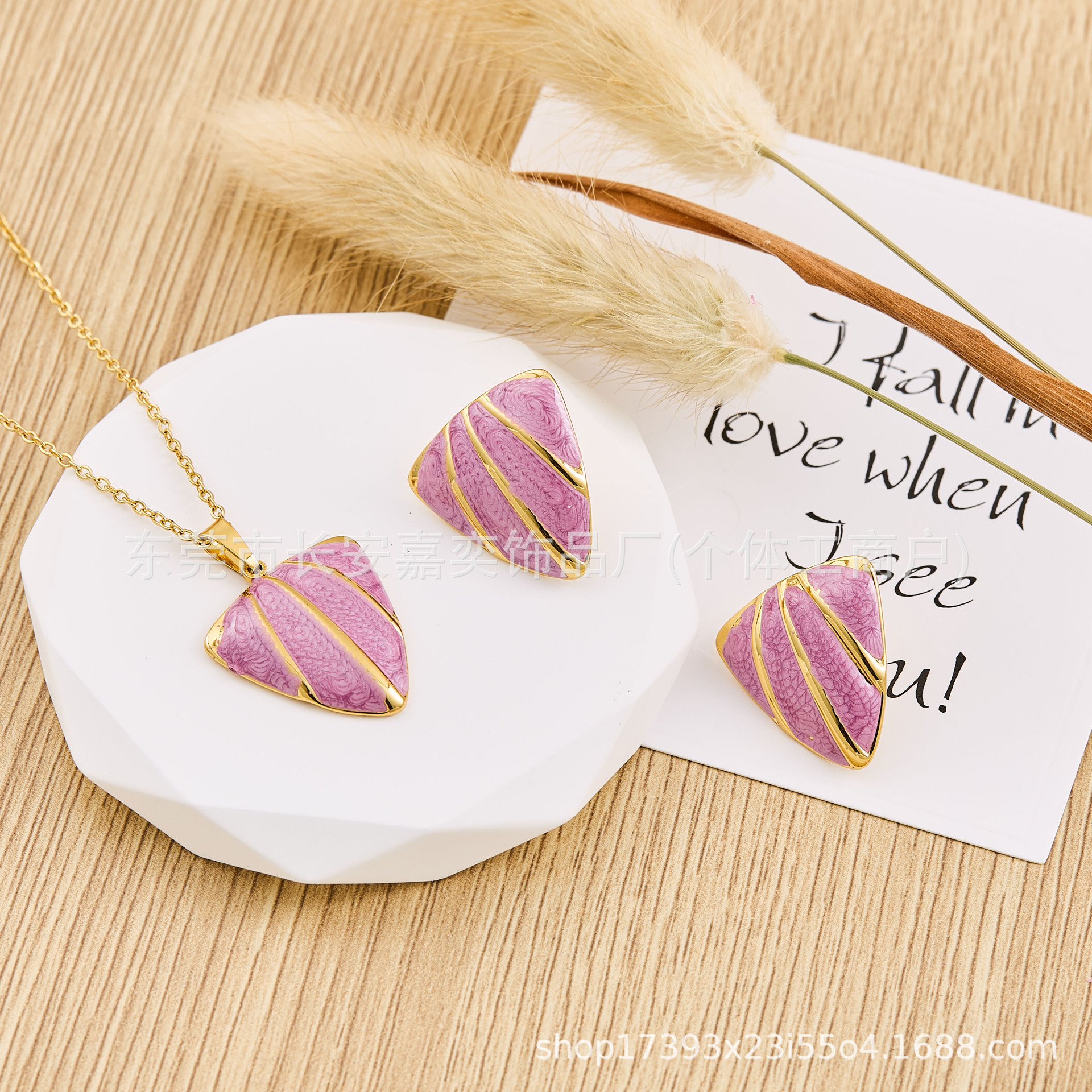 Cross-Border New Product Love Drop Glaze Earrings Necklace Set Personalized Versatile Stainless Steel Jewelry Set Wholesale