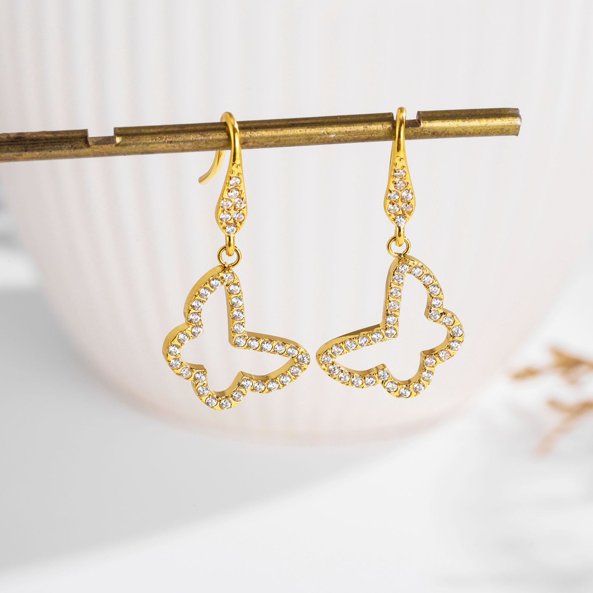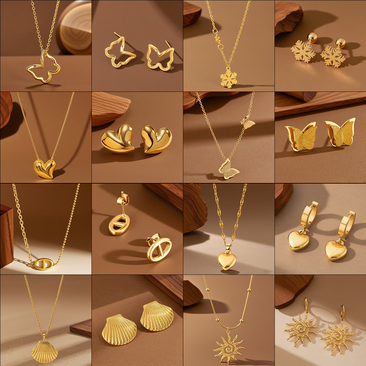 Bohemian butterfly pendant necklace earrings suit cross-border fashion gold-plated clavicle chain stainless steel set chain