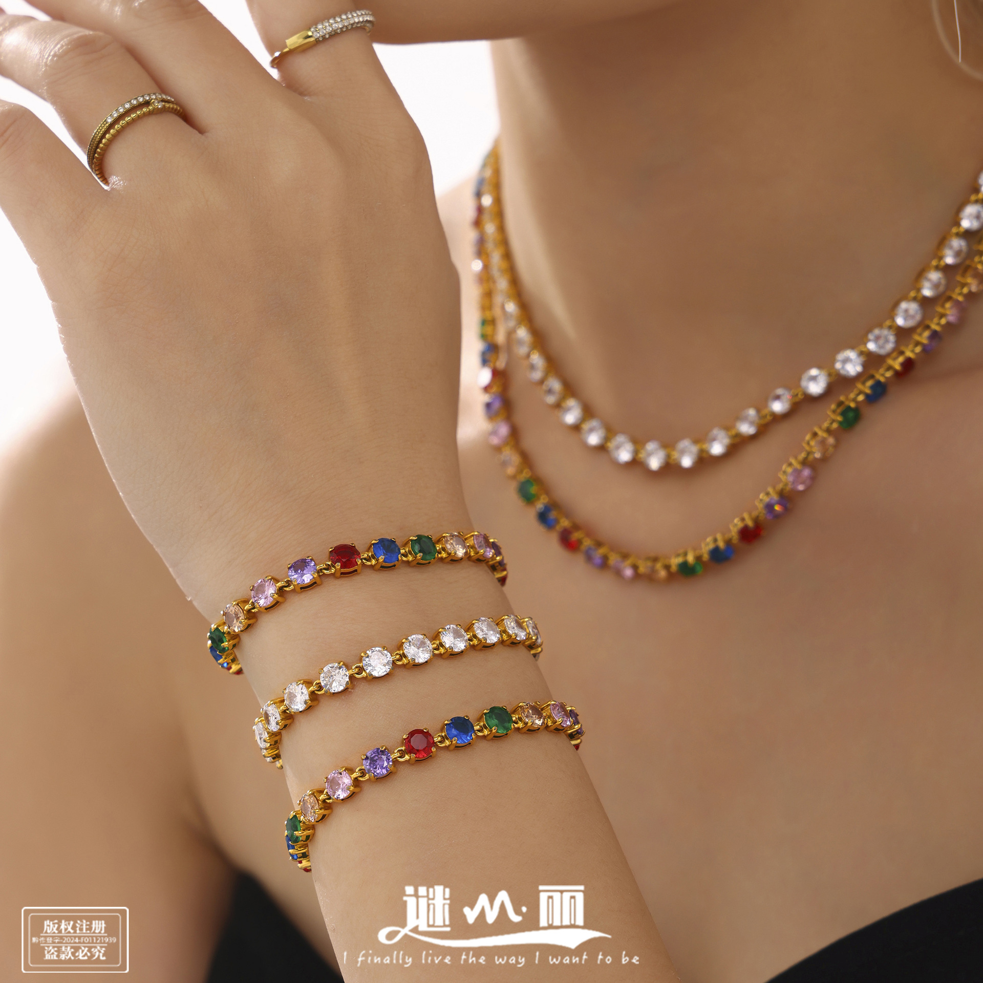 Enigma ins Stainless Steel Handmade Claw Set with 5mm Color Zircon Super Flash Bracelet Necklace suit PVD Plated 18K True Gold