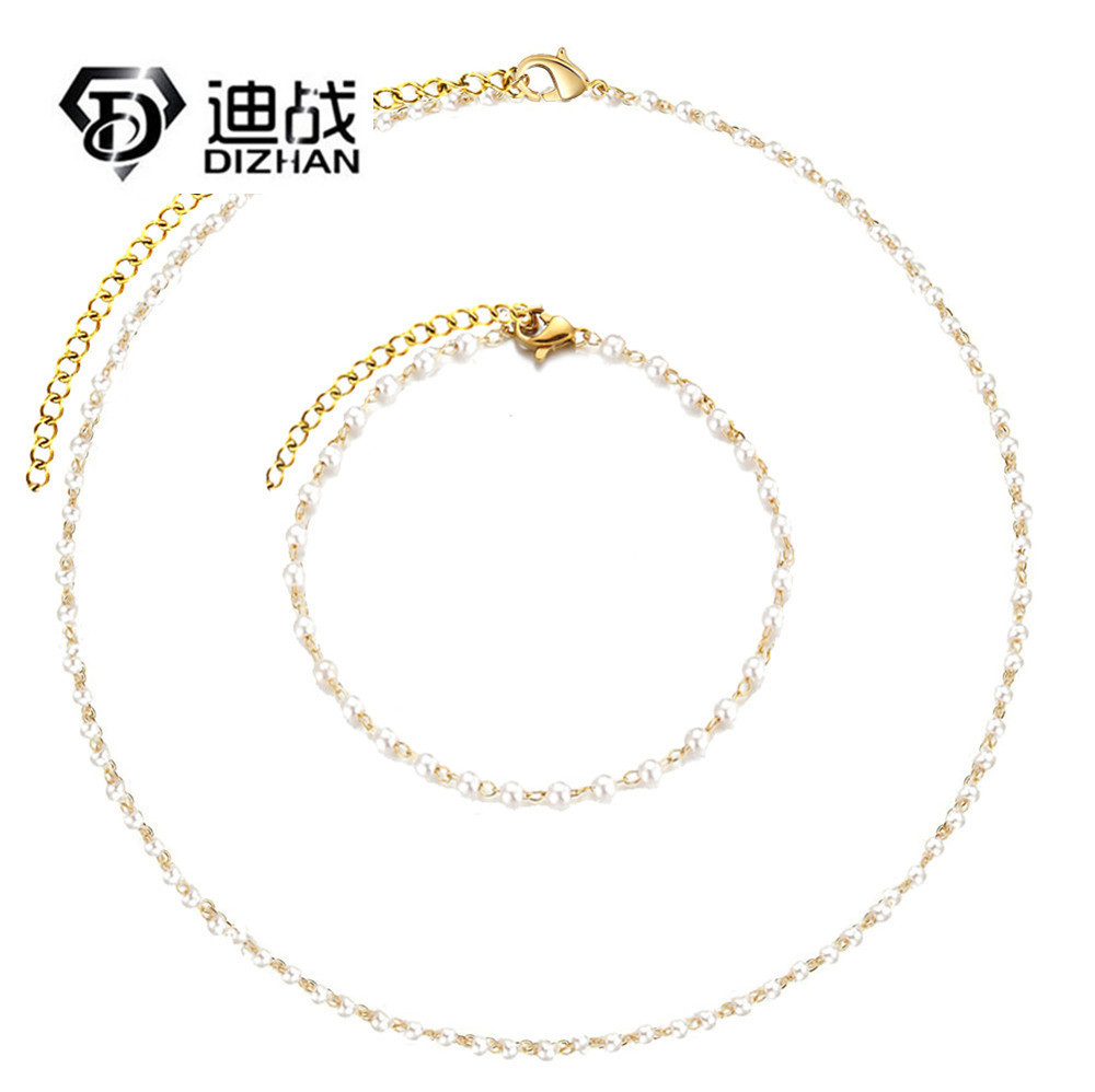 Korean fashion new stainless steel necklace jewelry wholesale pearl chain lobster clasp bracelet necklace set