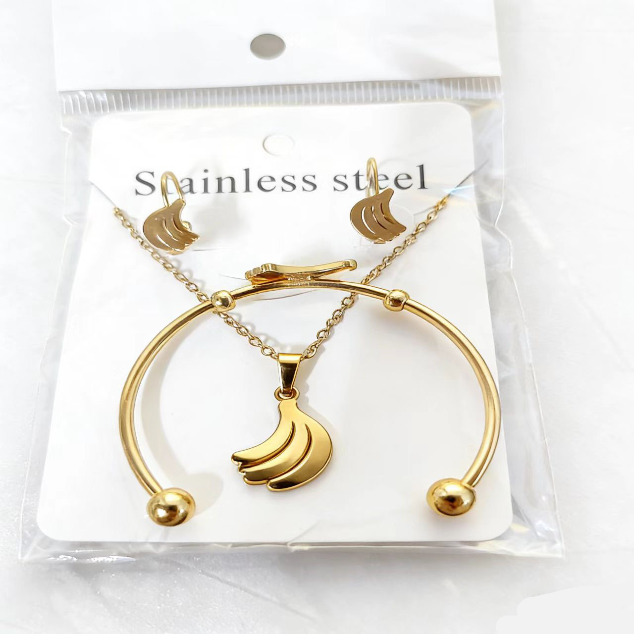 Children's Stainless Steel Necklace, Bracelet, Earrings, European and American Fashion New Banana Three-Piece Jewelry Set
