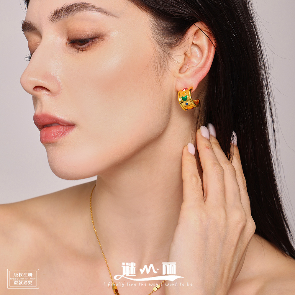 Mystery C type love wide face earrings ins wind new square card lettering pendant necklace titanium steel combination suit wholesale