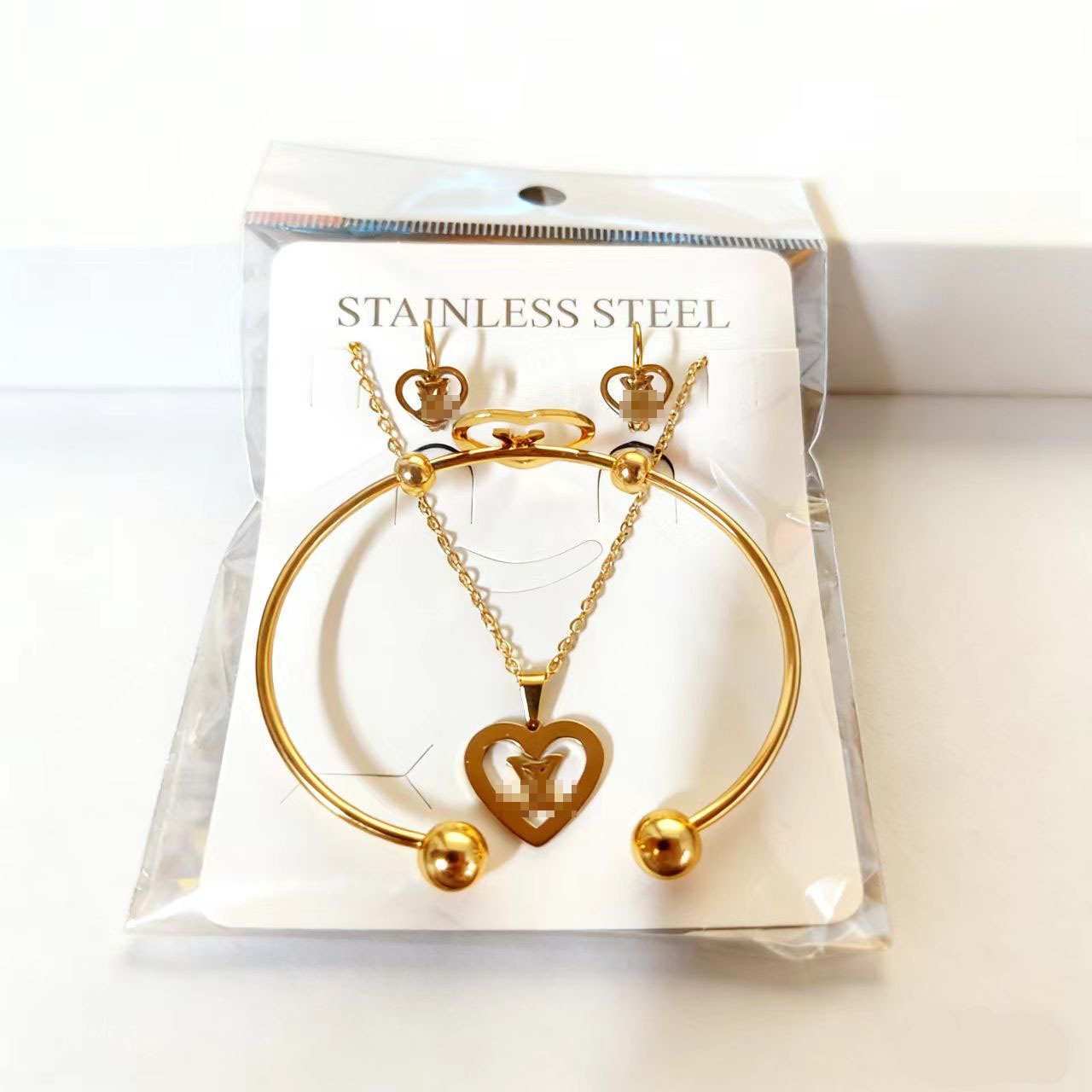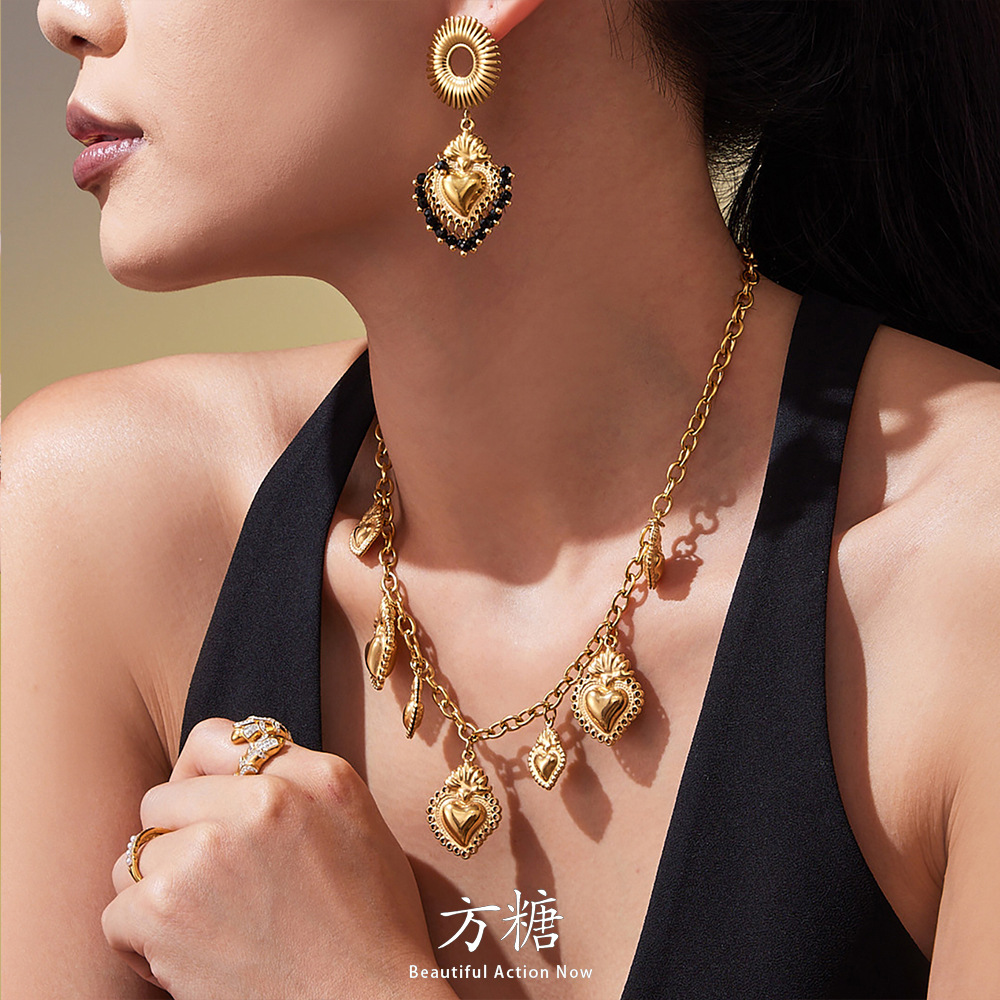 Stainless Steel Design Heart Multi-Pendant Bracelet Necklace 18K Gold Plated Ins European and American Exaggerated Jewelry Set