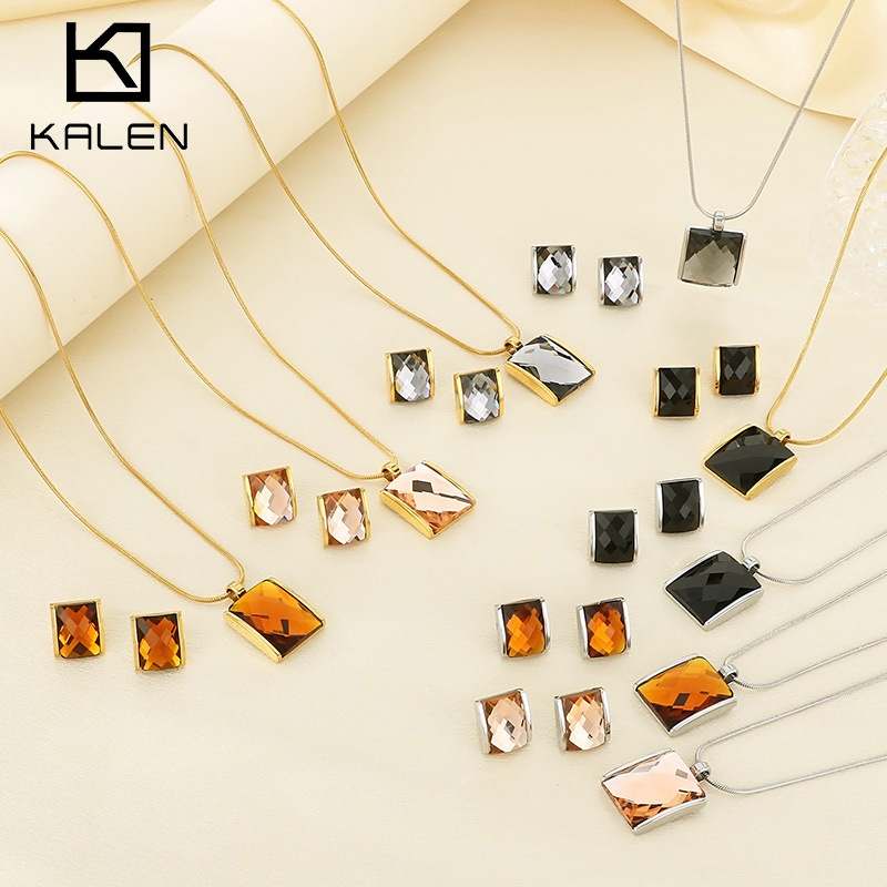 Women's Card Wheel Light Luxury Retro Square Glass Pendant Fashion Trend Snake Bone Chain Necklace Stainless Steel Set
