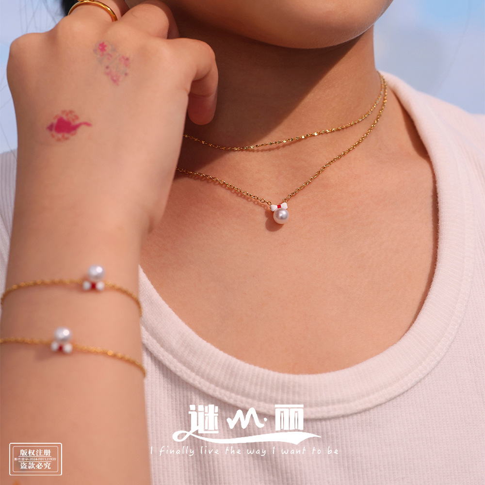 Enigma Bow High Glow Traceless Bead Necklace Bracelet Ring Earrings Small Children's Fun Girls Stainless Steel suit