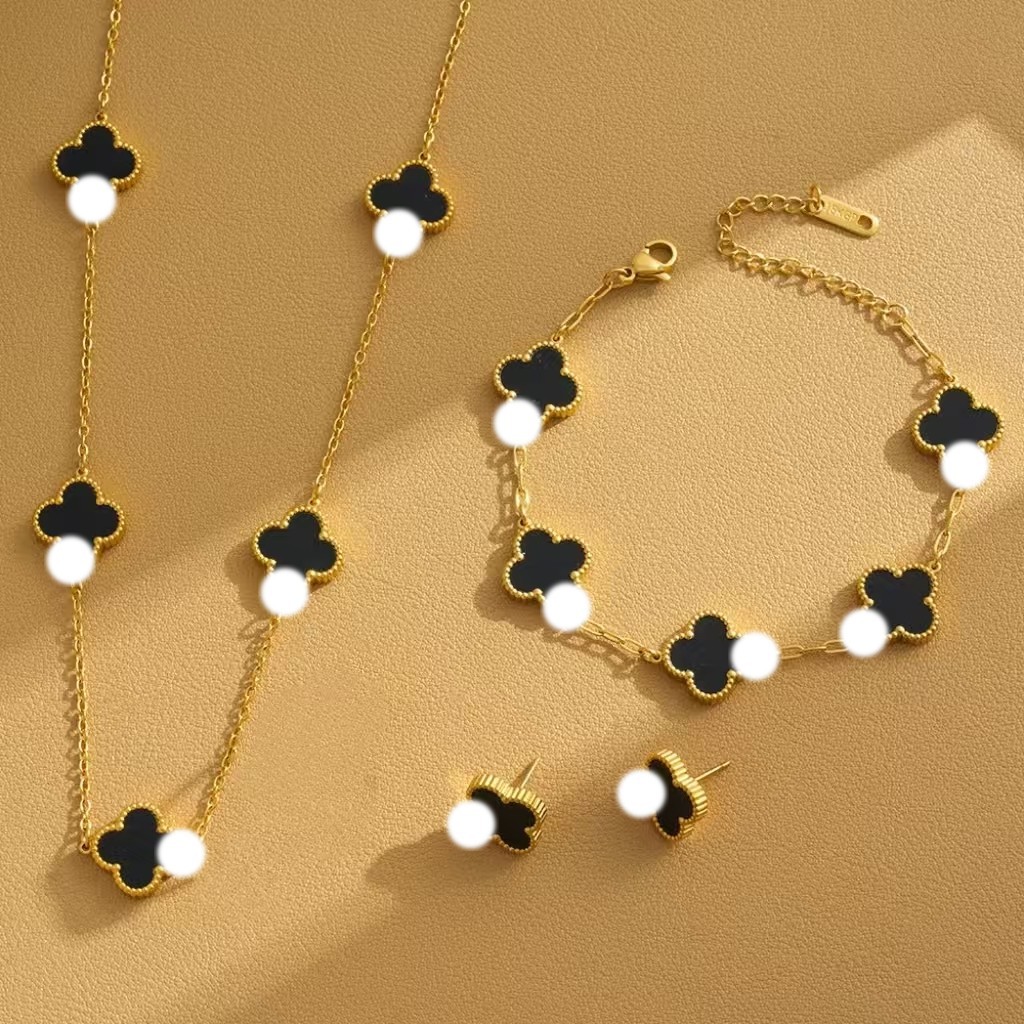 Titanium Steel Non-Fading Double-Sided 13mm Four-Leaf Flower Set Necklace Women's Fashion Elegant Accessible Luxury Popular Clavicle Chain Bracelet