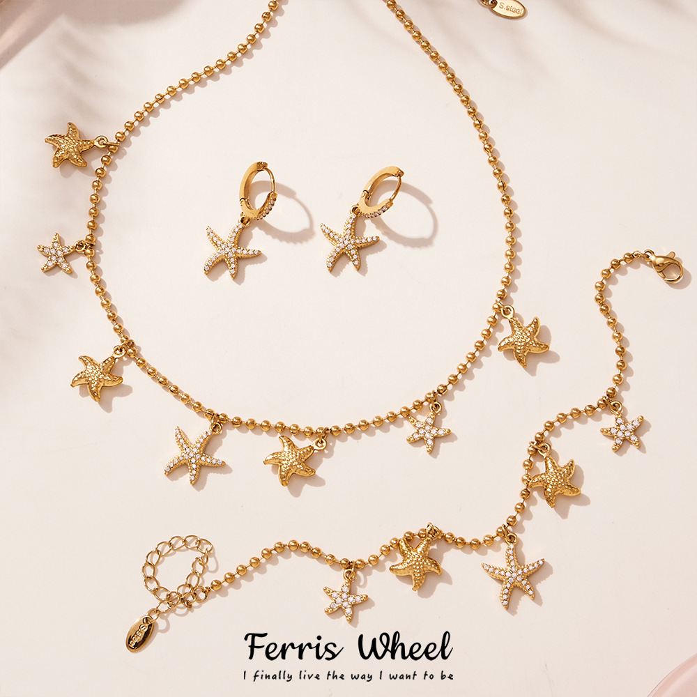 Ferris Wheel Diamond Starfish Pendant Necklace Bracelet Anklet Elegant Earrings Women's Simple Elegant Jewelry Set Wholesale