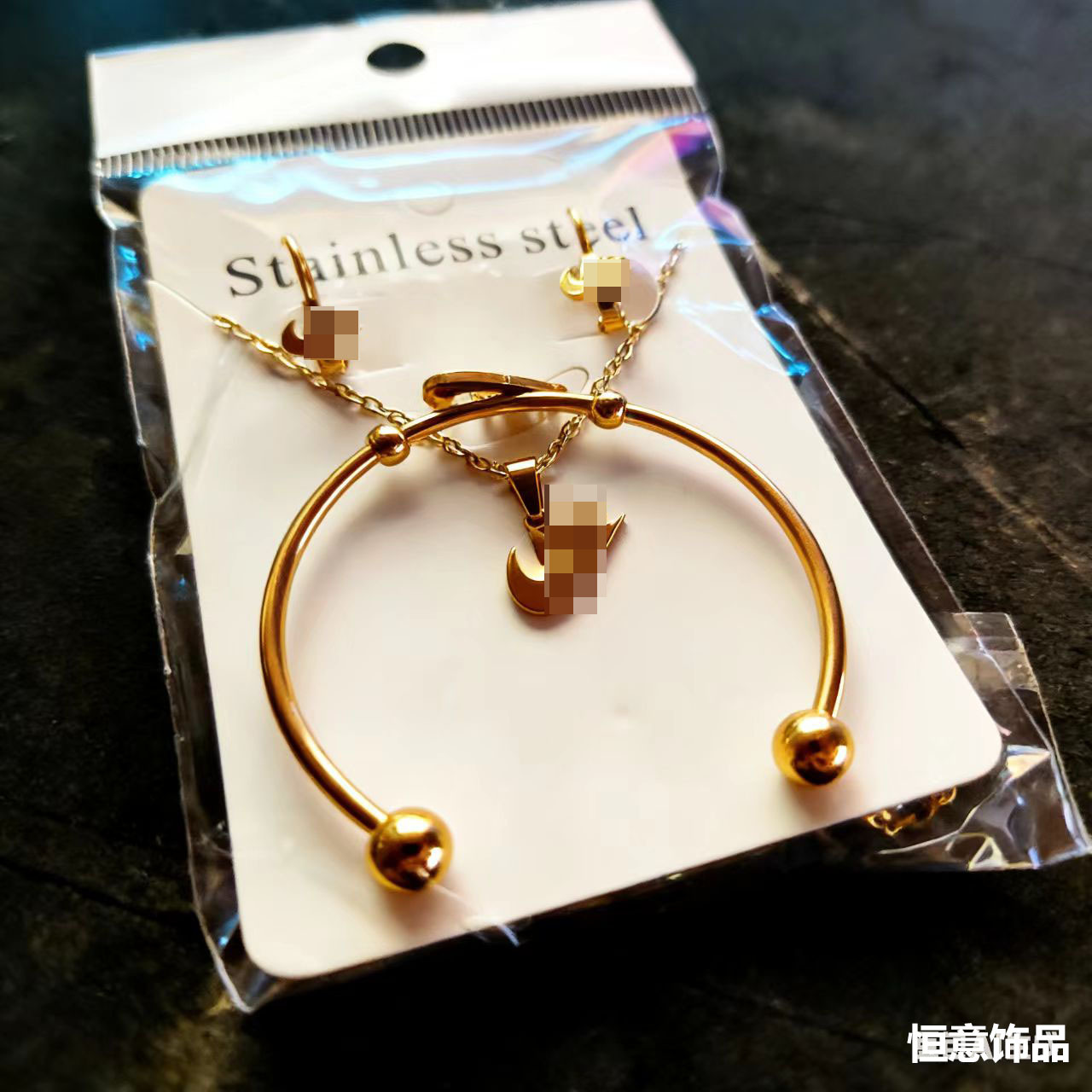 Children's Gold Stainless Steel Simple Fashion Personality Versatile Niche High-End Hook Earrings Necklace Bracelet Set