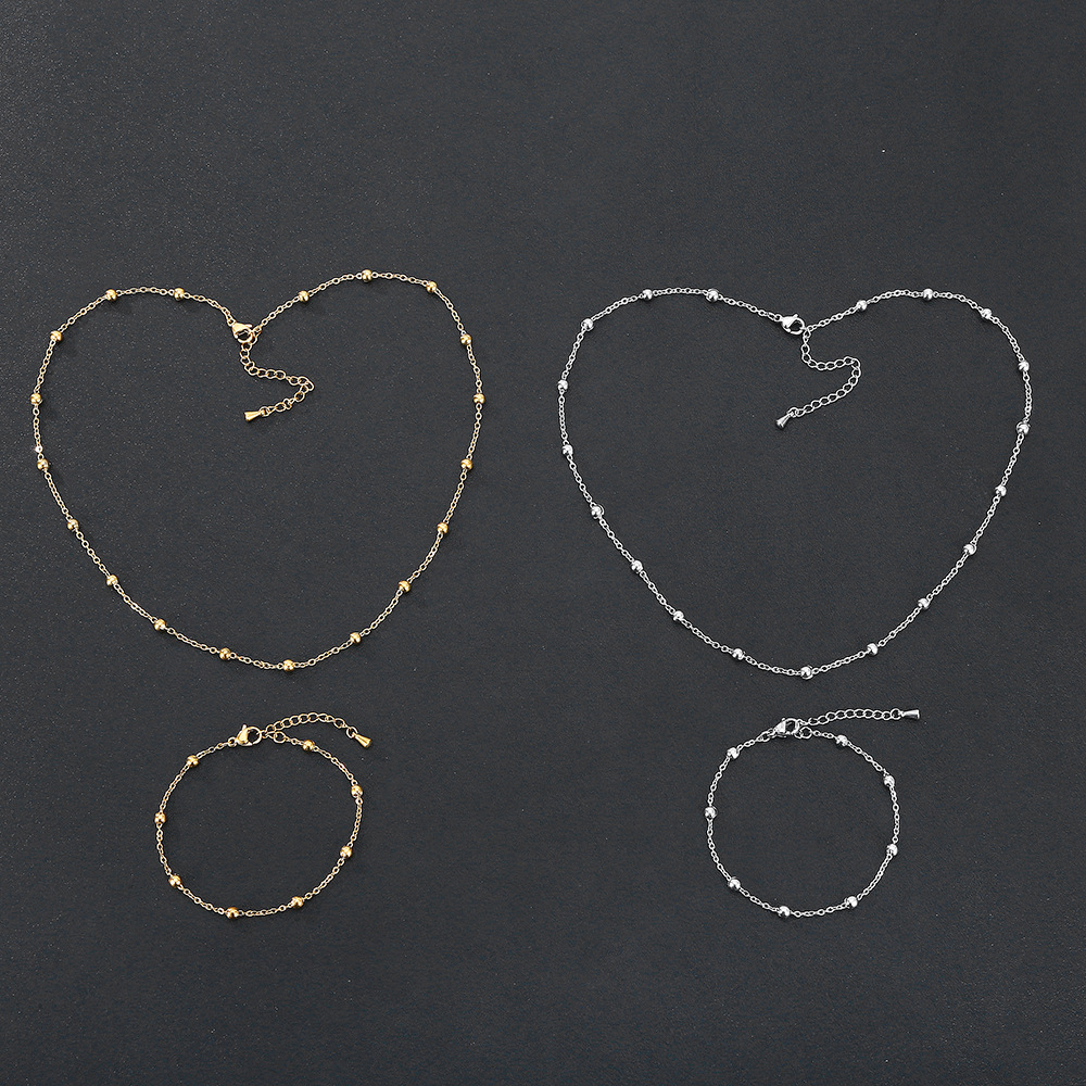 Metal Stainless Steel DIY Jewelry Meticulous Simple Bead Chain Wear-resistant Waterproof Fadeless Bracelet Necklace suit