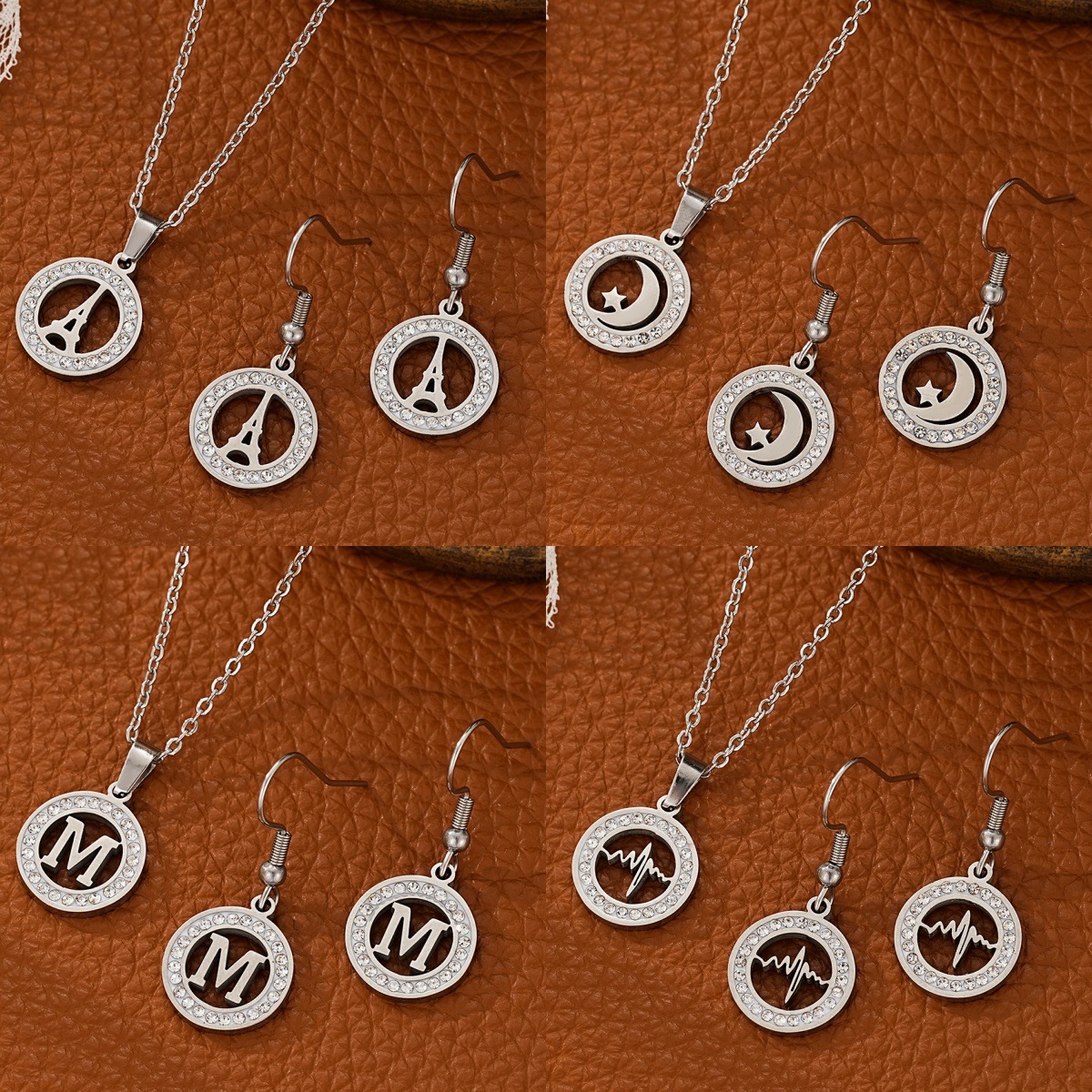 Cross-border new stainless steel hollow letter necklace suit men and women titanium steel pendant earrings European and American fashion jewelry