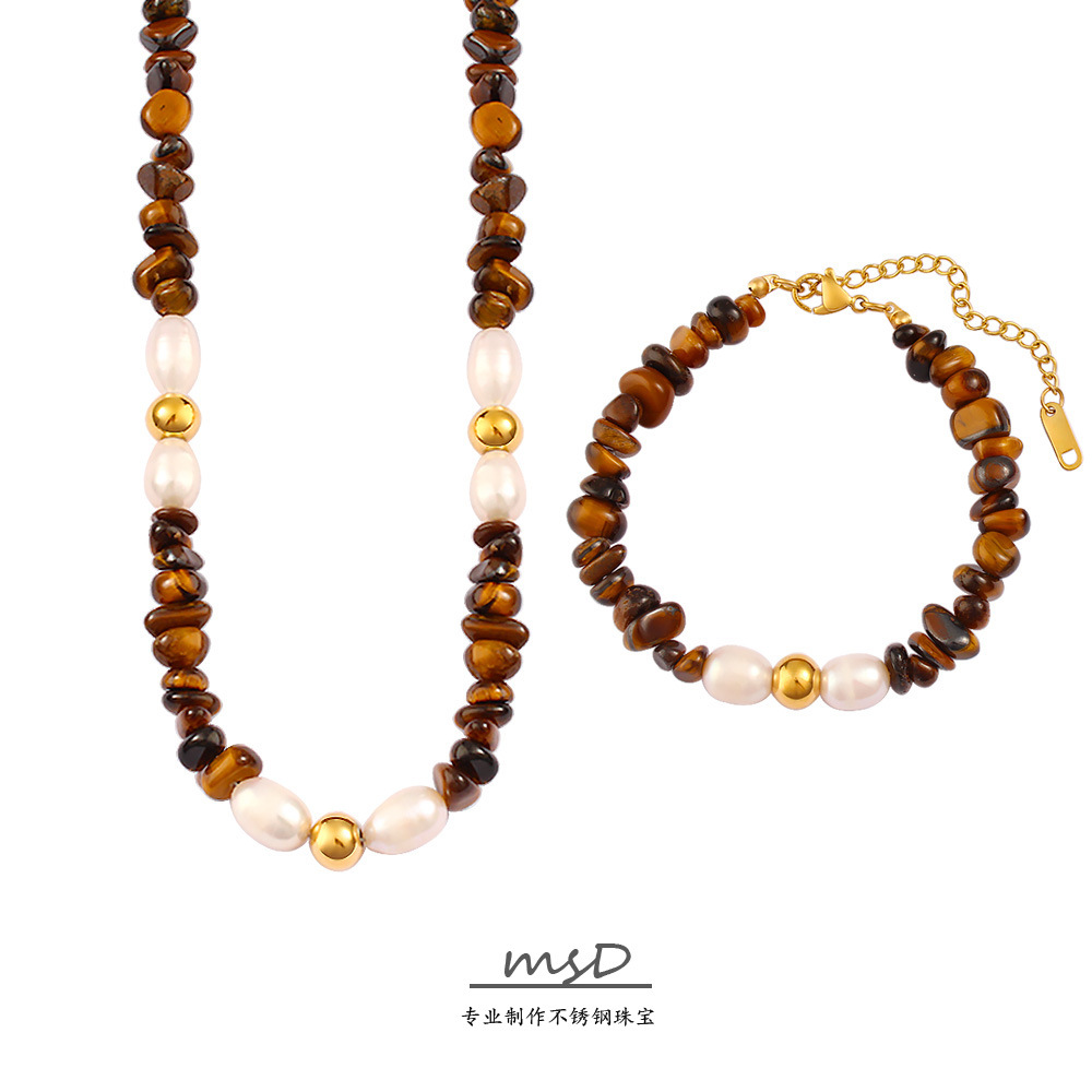 Light Luxury Textured Tiger Eye Necklace Bracelet Pearl Design Beaded Jewelry suit Women's Niche All-match Jewelry