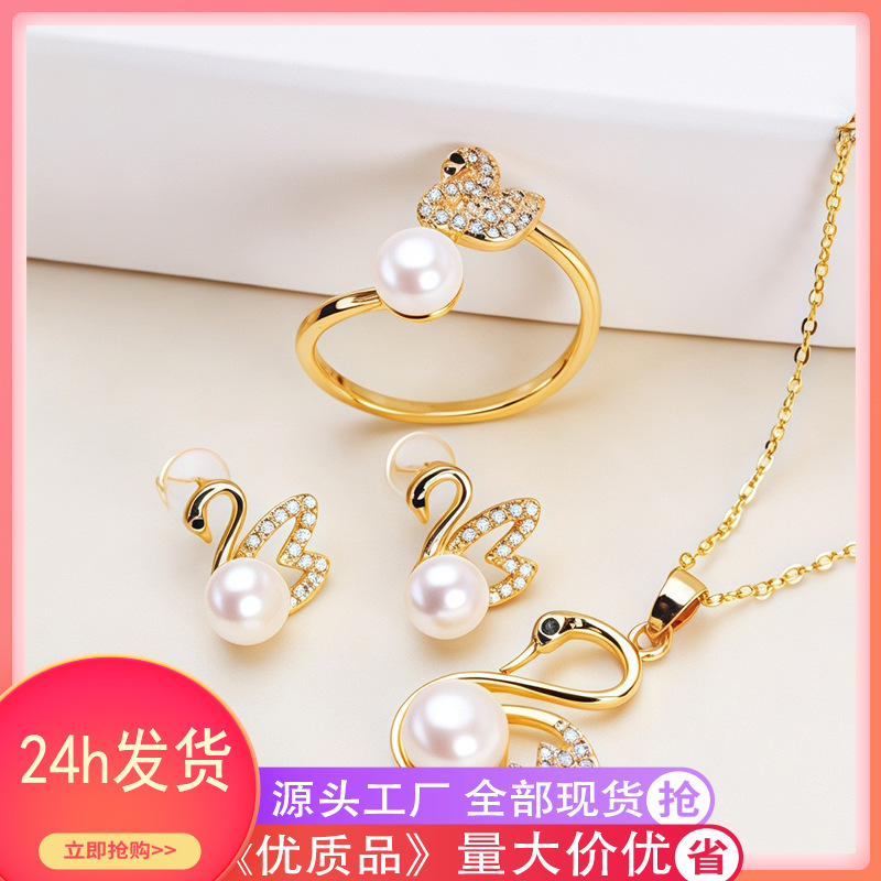 Wholesale Hot-Selling Pearl Set, Elegant Necklace, Ring, Earrings, Little Swan Fashion Jewelry, Women's Three-Piece Set Wholesale